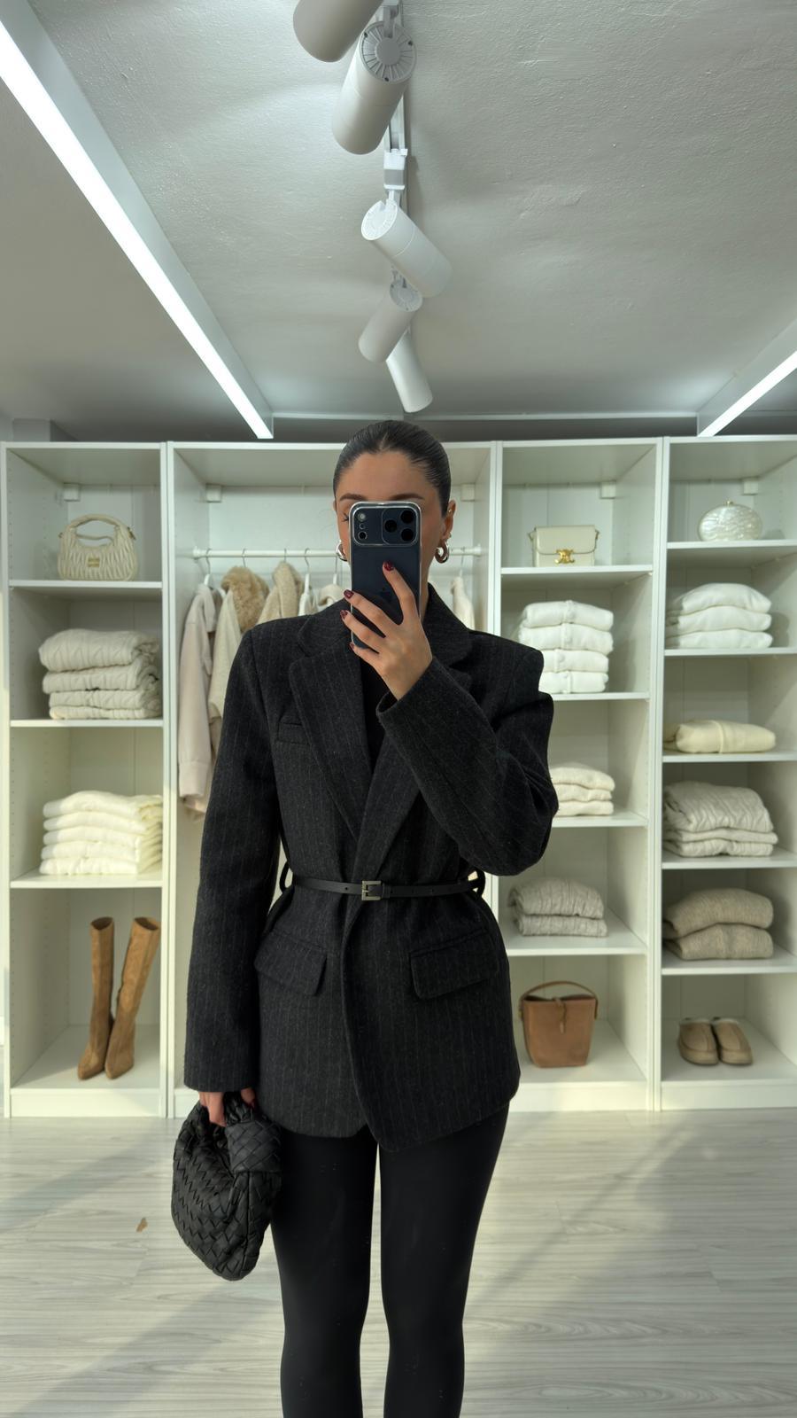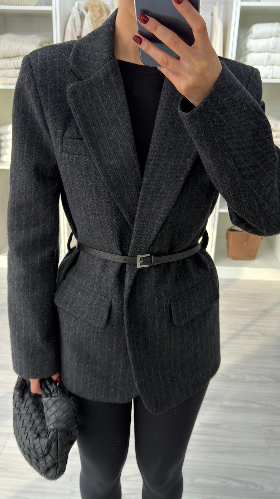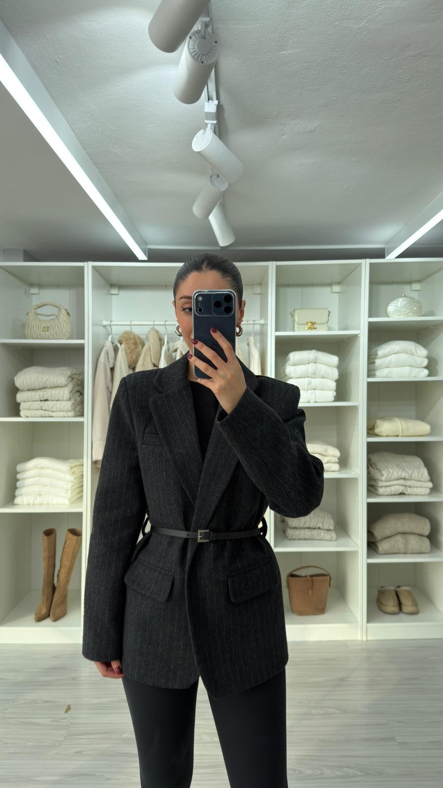 جاكيت كشمير فاخر مبطن مرفق مع حزام جلد