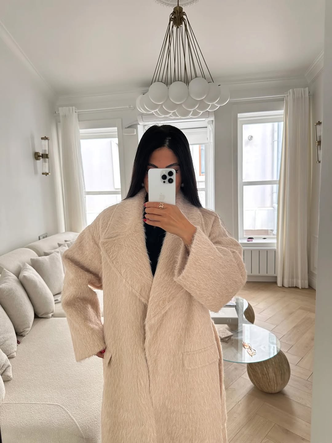 جكيت فرو ناعم طويل باللون البيج