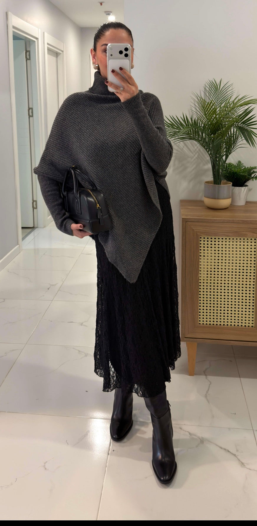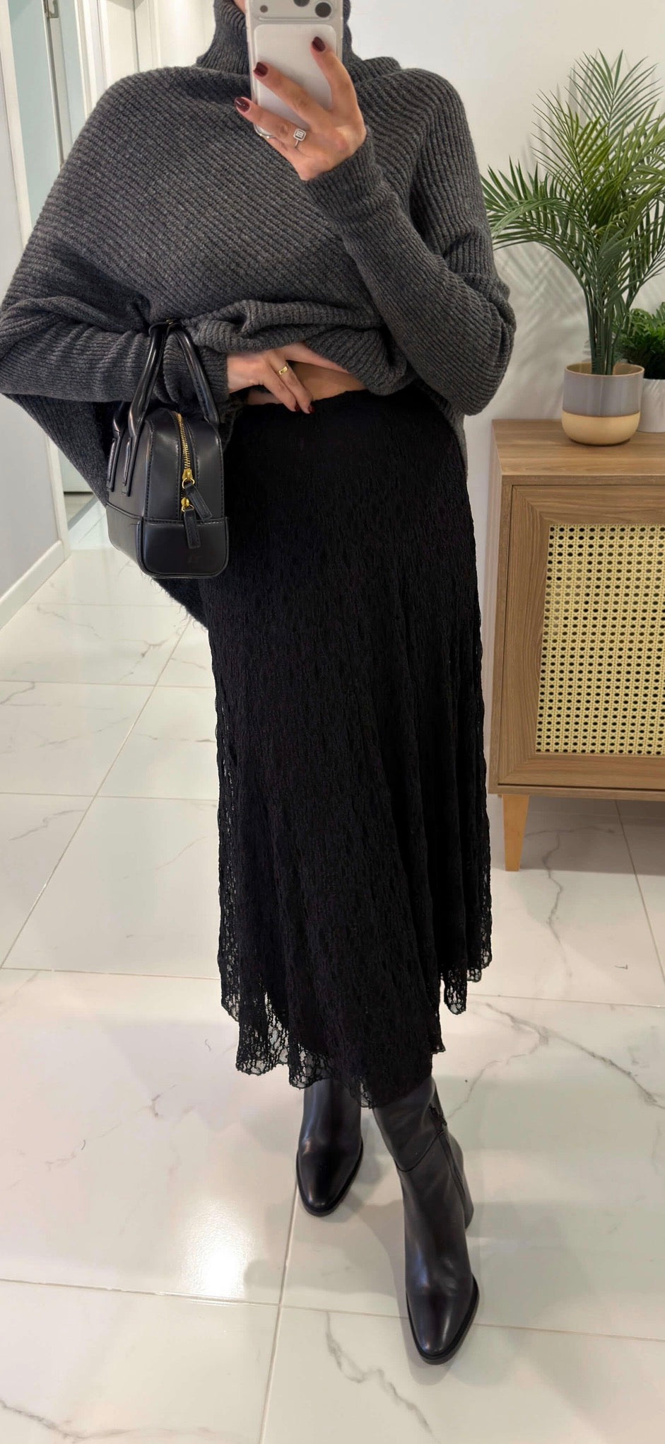 تنورة ناترا سوداء من الدانتيل مع بطان
