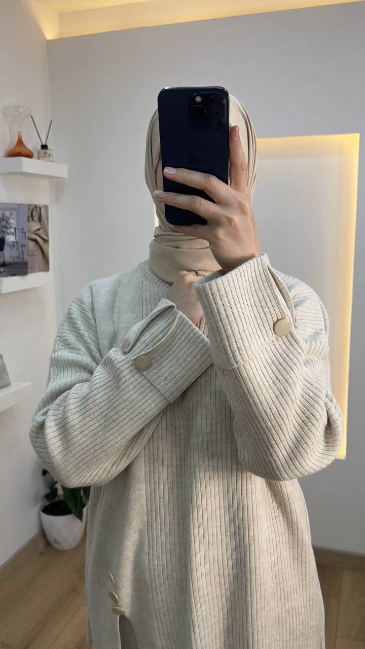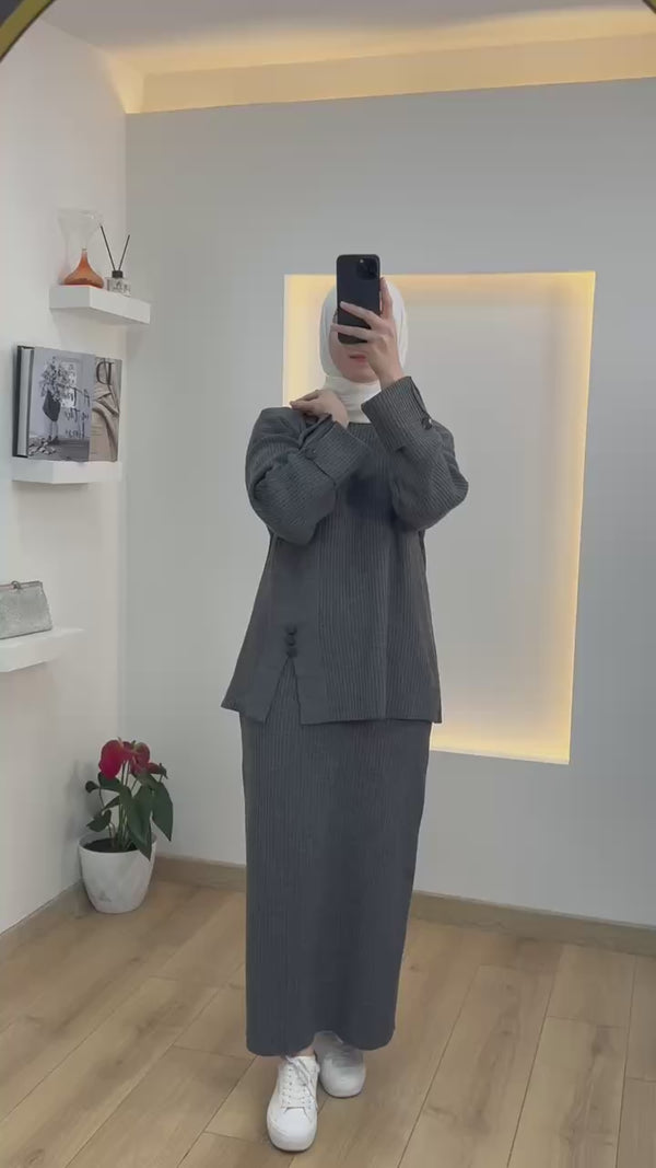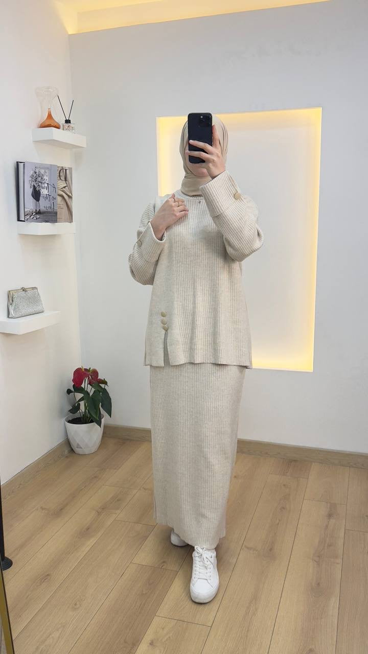 طقم تنوره تريكو بأزرار جانبية