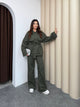 طقم مكوّن من قميص بقصّة مريحة مع تفصيلة لفّ ناعمة عند الخصر، وبنطال واسع يعطي انسيابية وأناقة بالحركة. التصميم يجمع بين البساطة والفخامة، مناسب للإطلالات اليومية الراقية أو للّبس العملي والمناسبات غير الرسمية