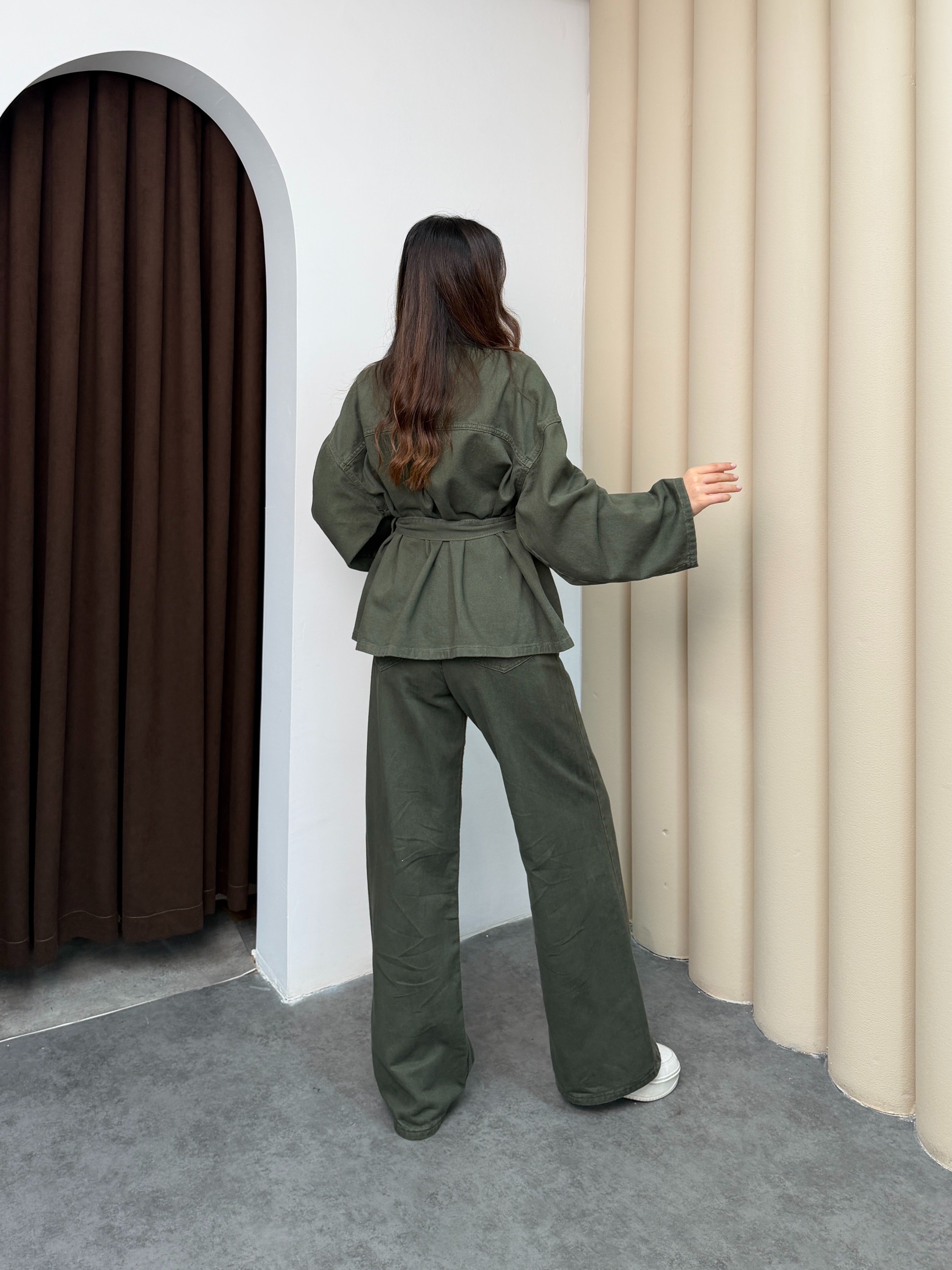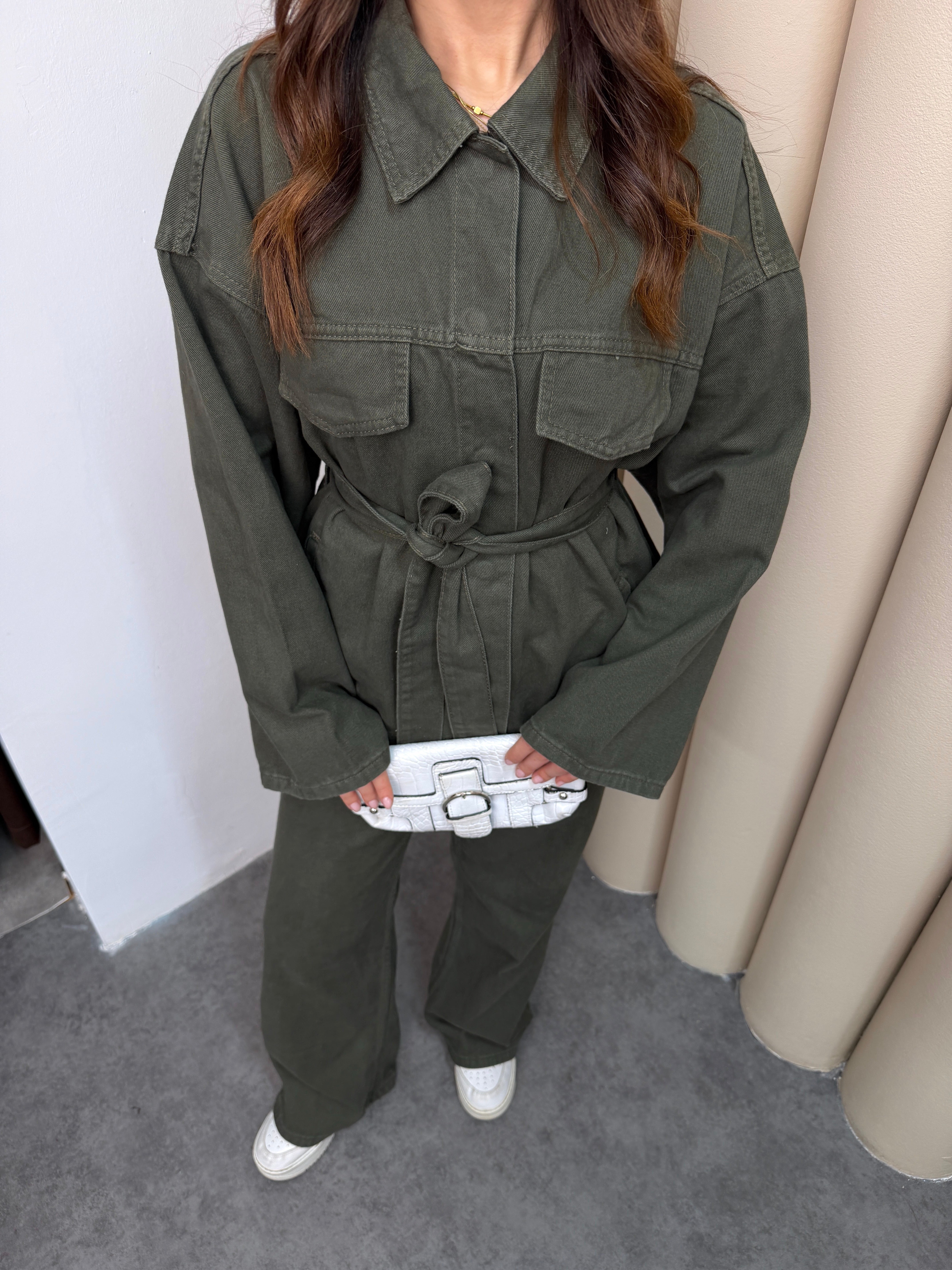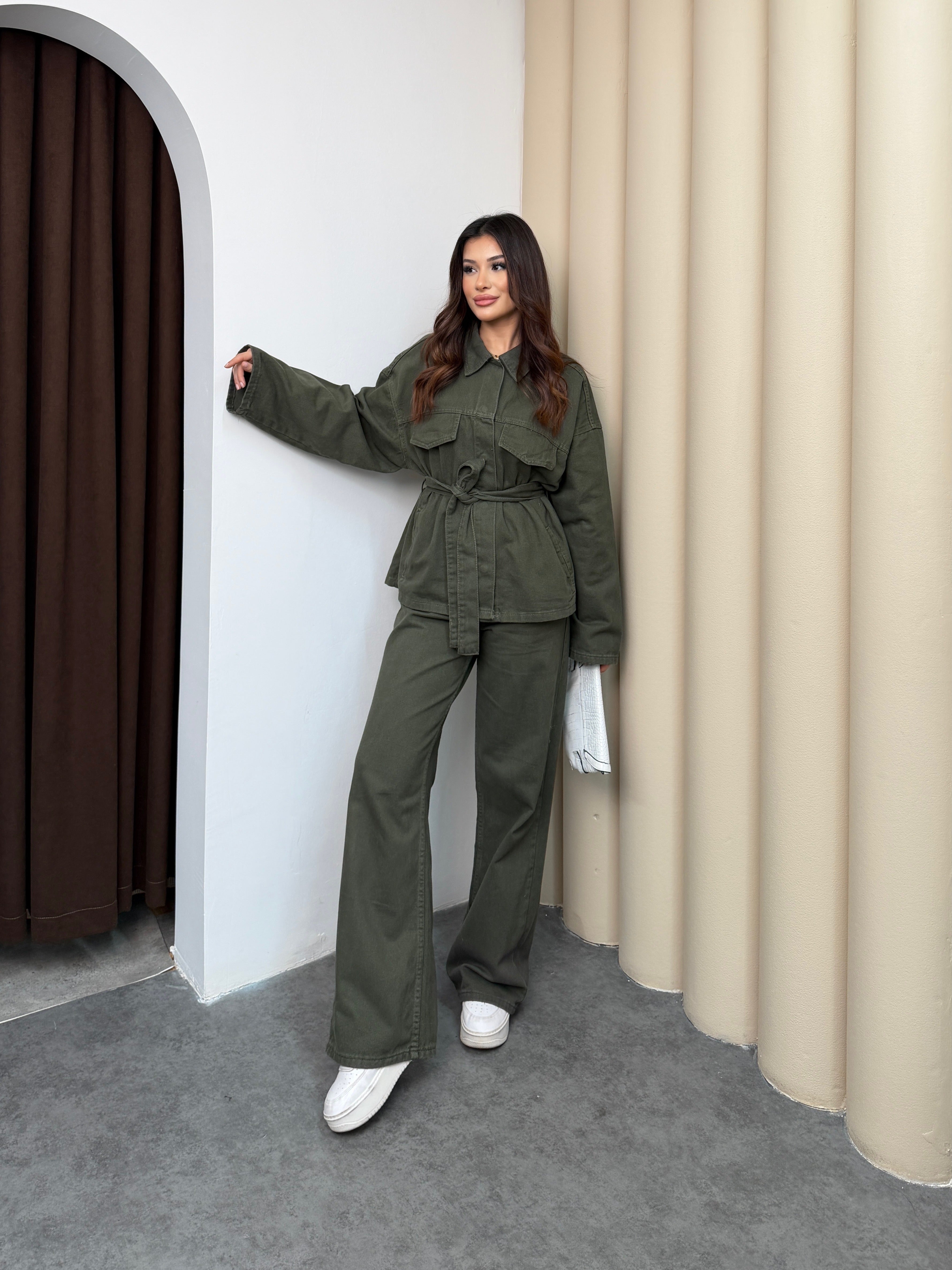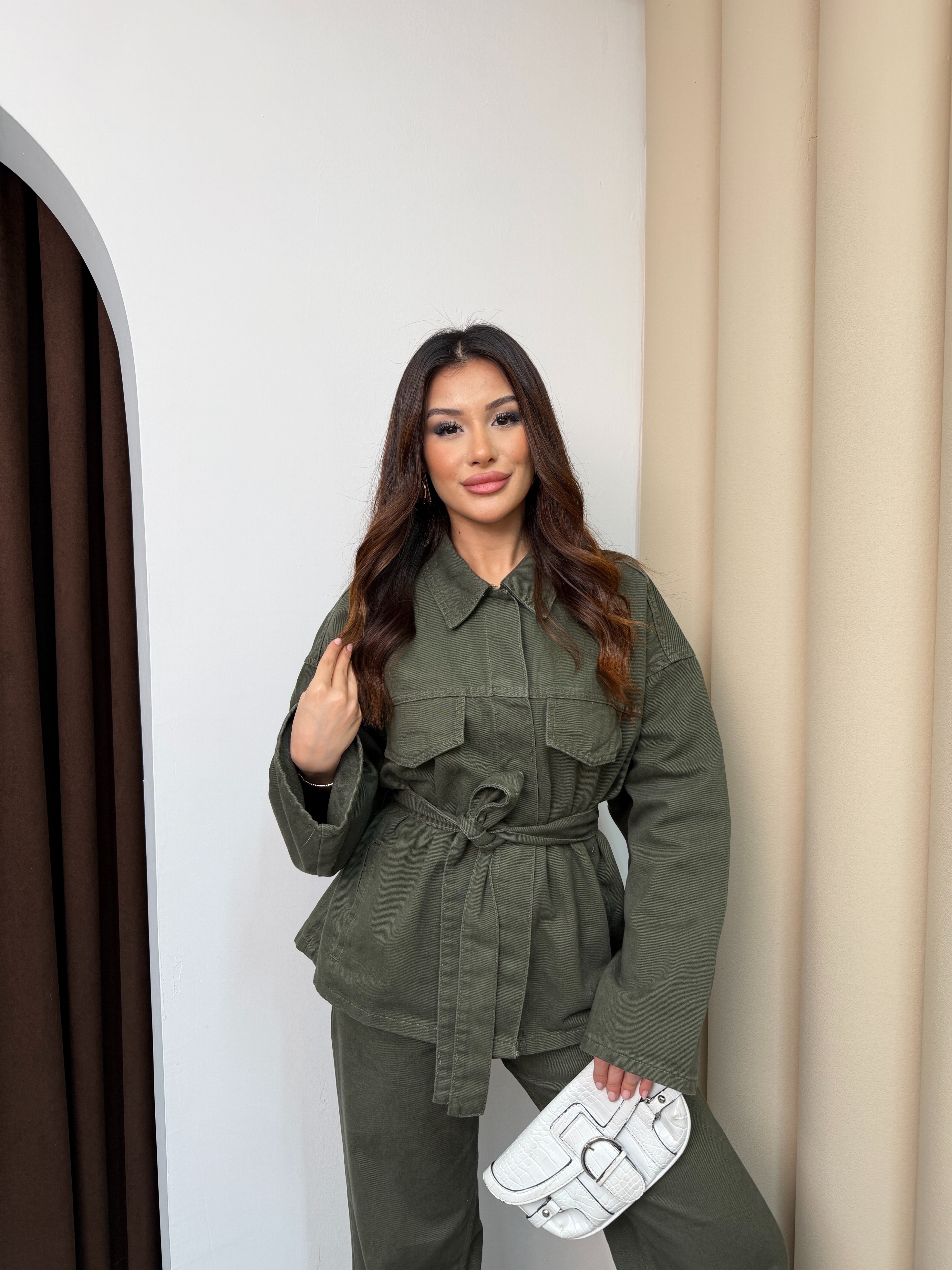 القطعة العلوية: أكمام طويلة، مزوّدة بجيوب وحزام
