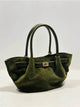 حقيبة جلد عصرية بأزرار ذهبية باللون الزيتي 0355