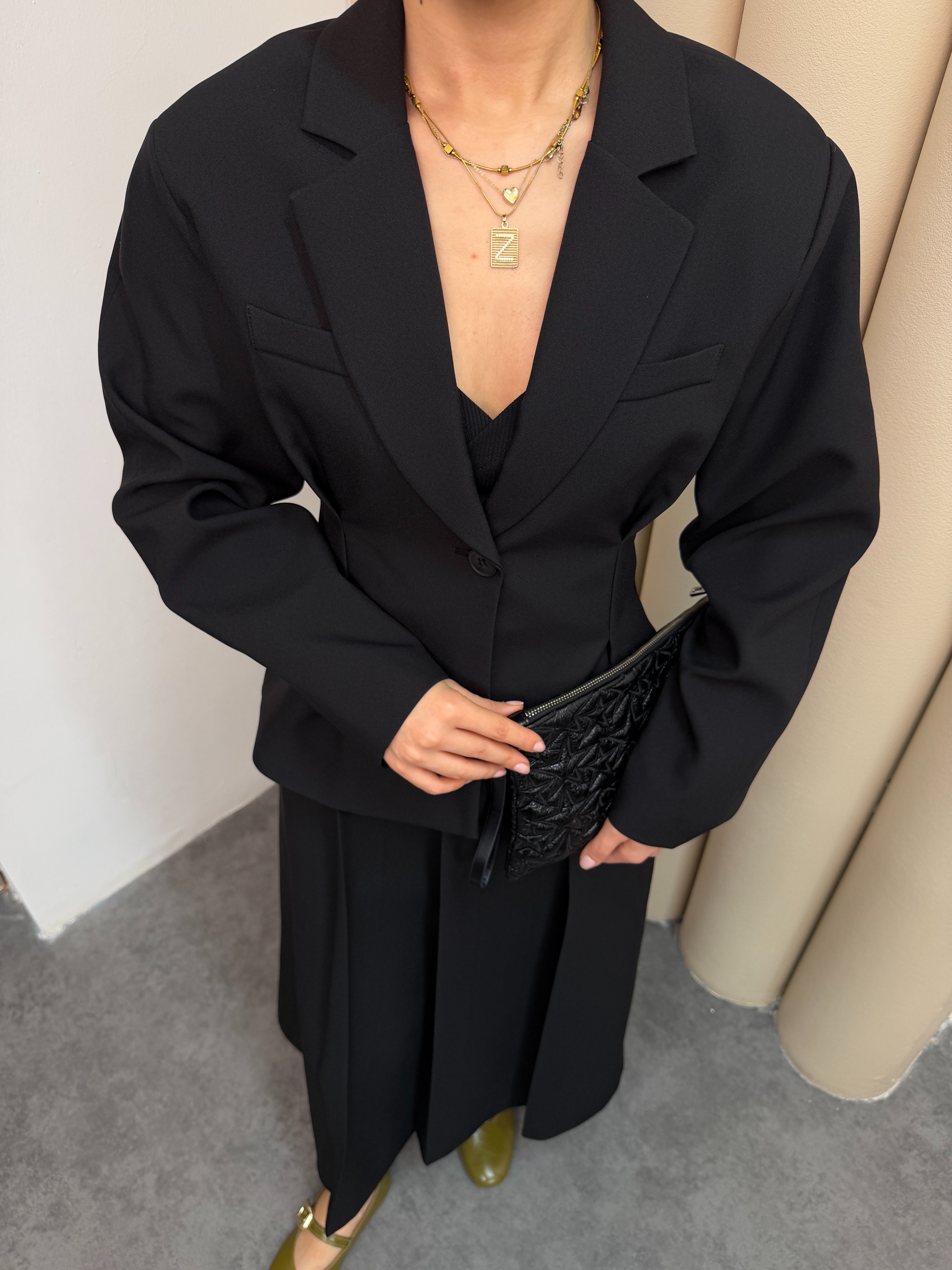 الجاكيت مبطن ومزود بأكتاف مبطنة.