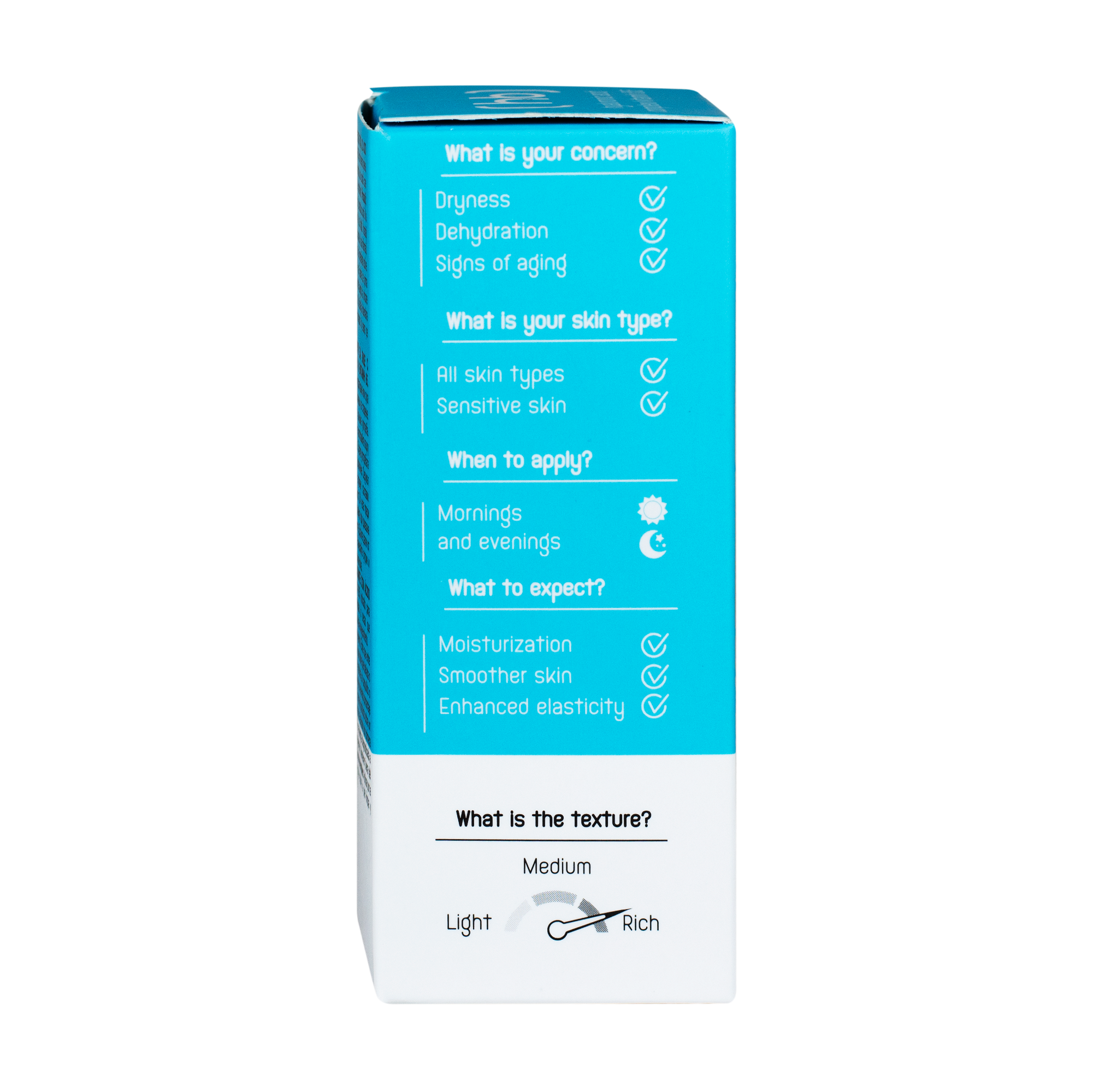 تركيبته خفيفة وسريعة الامتصاص، مناسبة لجميع أنواع البشرة، خصوصًا البشرة الجافة والمجهدة.