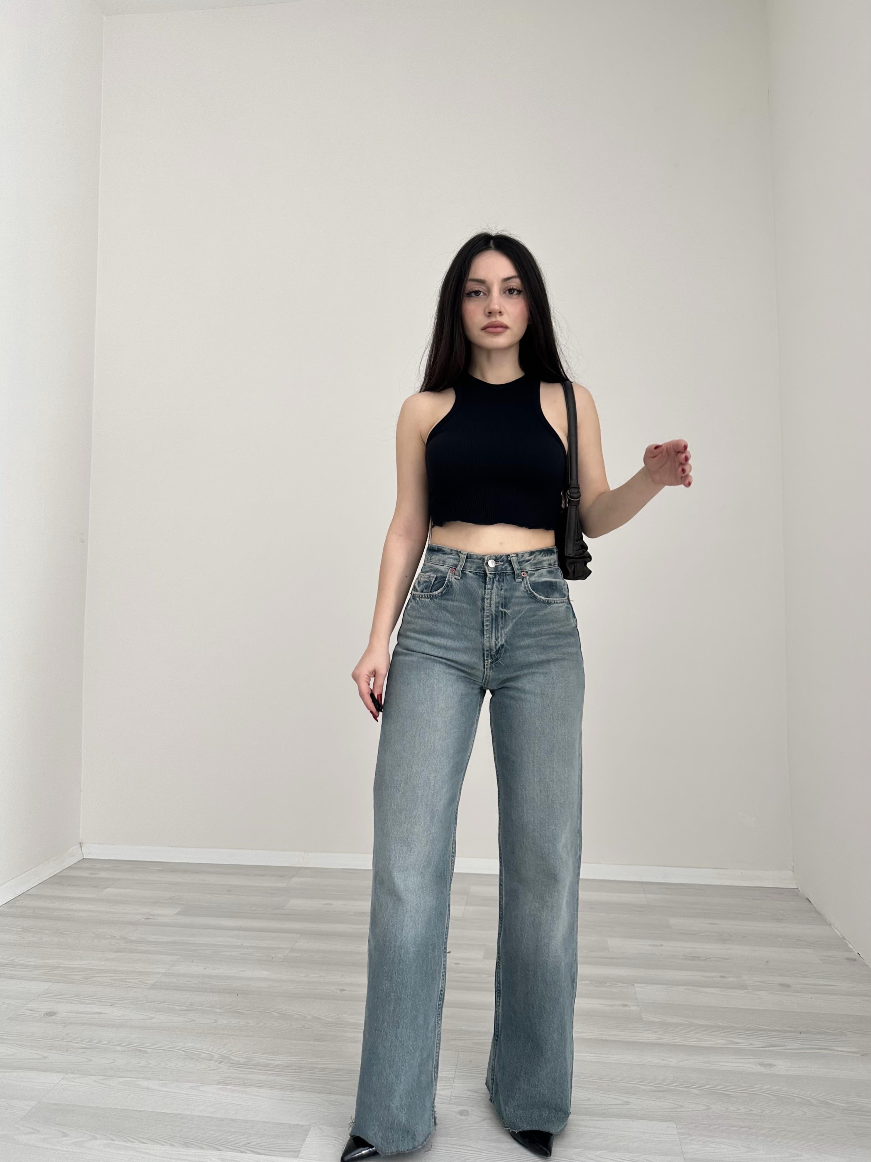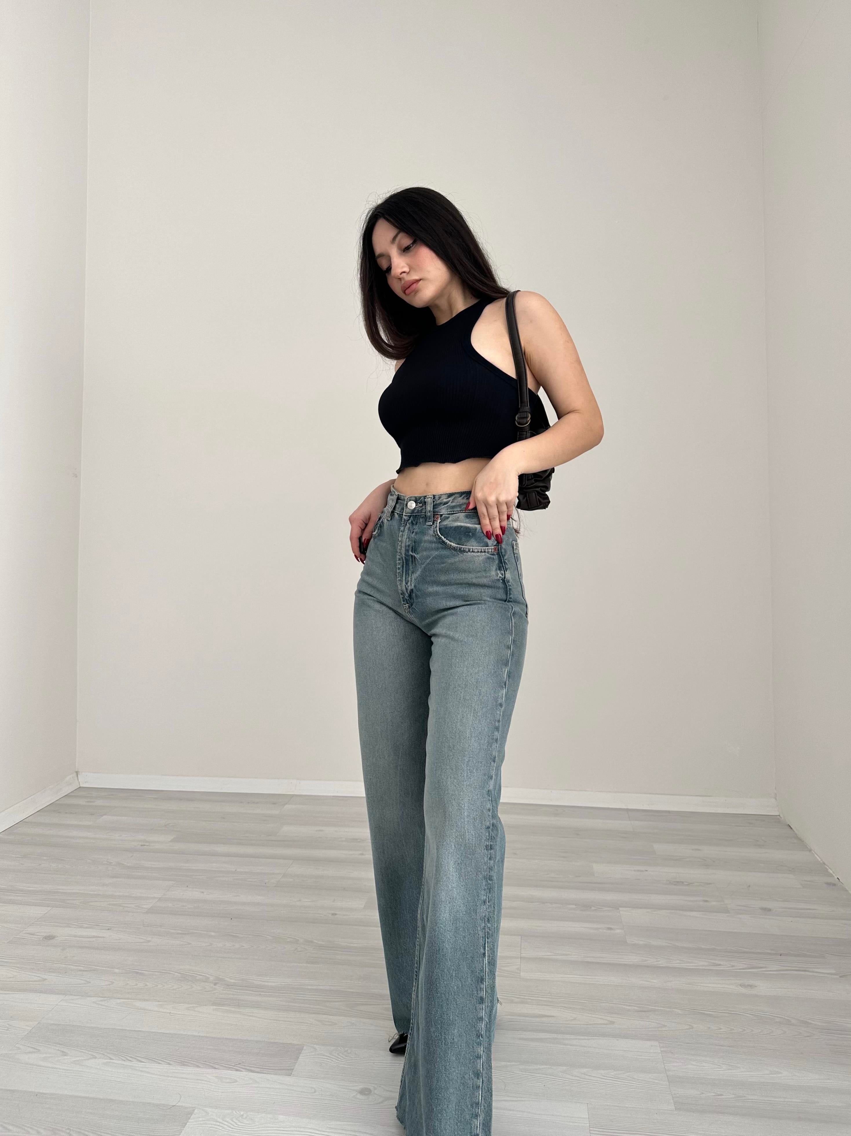 بنطال جينز واسع الساق بخصر عالٍ من ZR TRF (صدئ)
