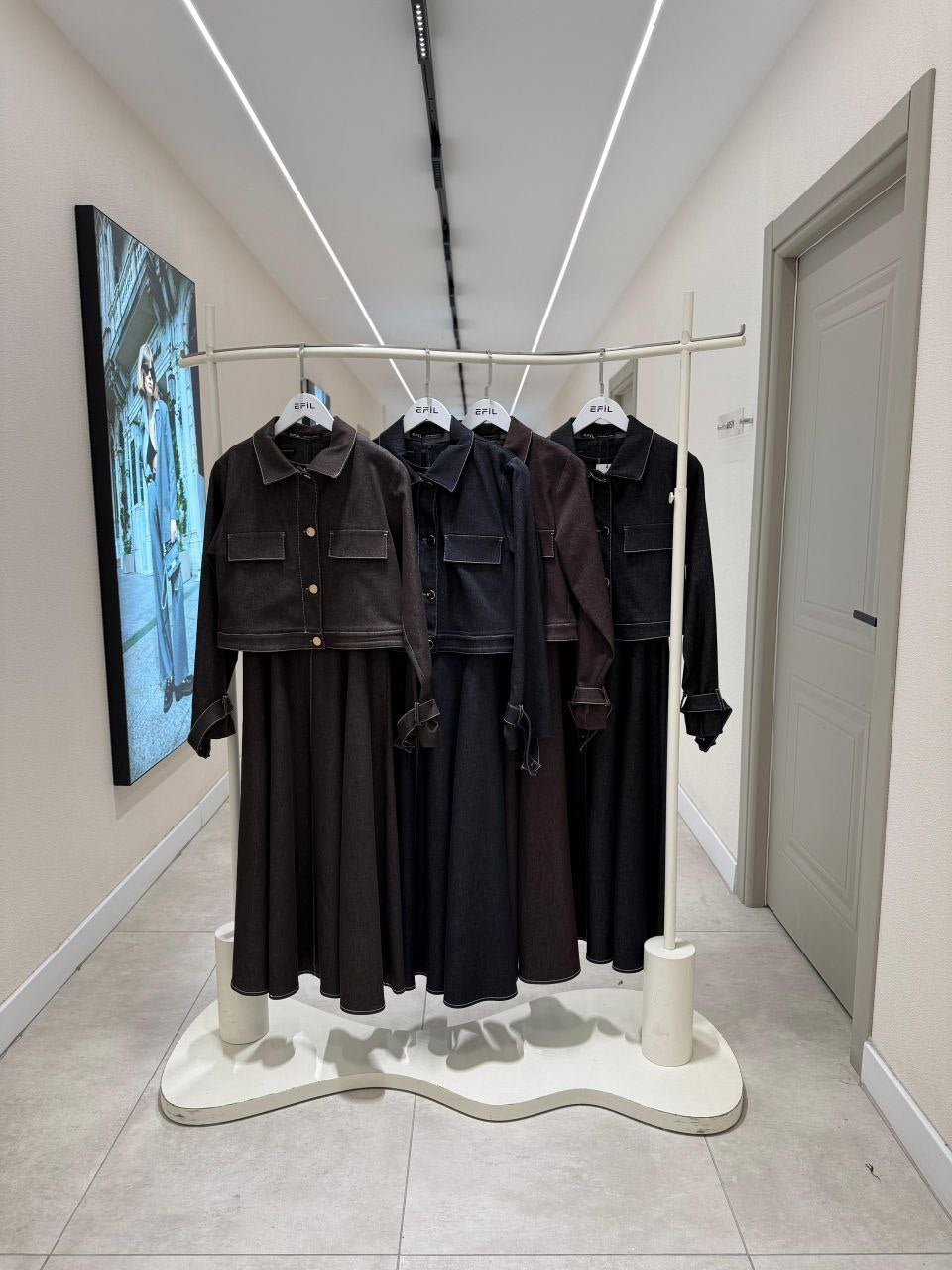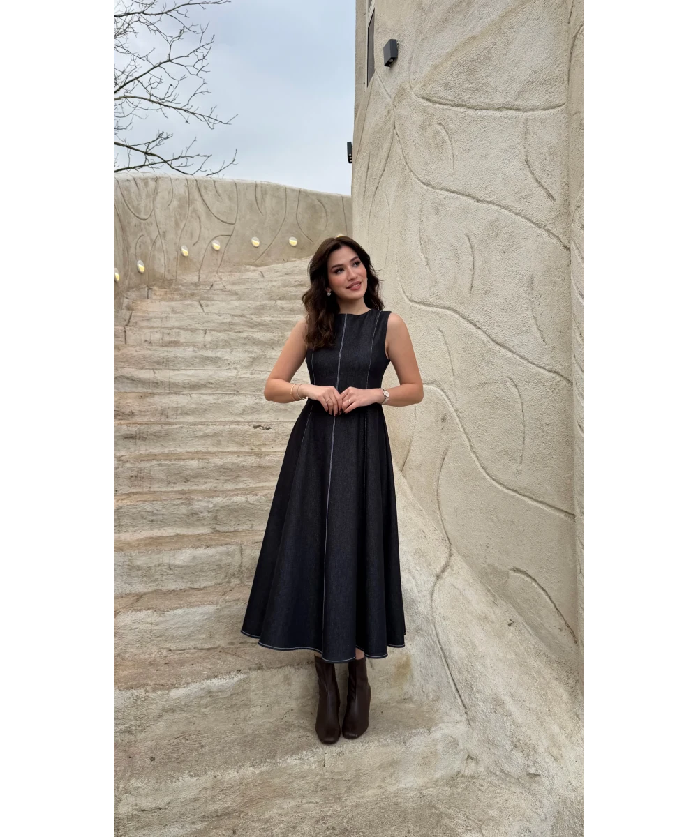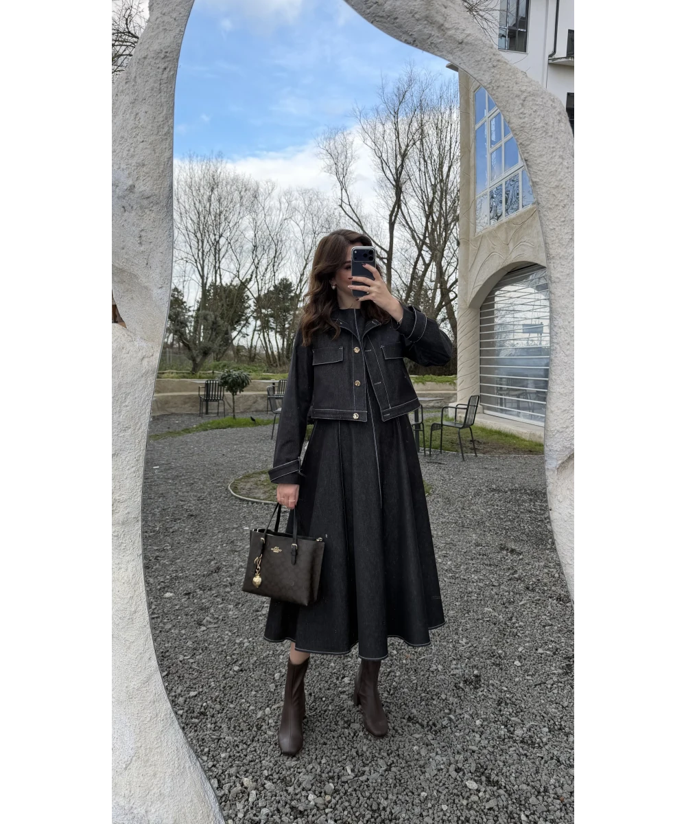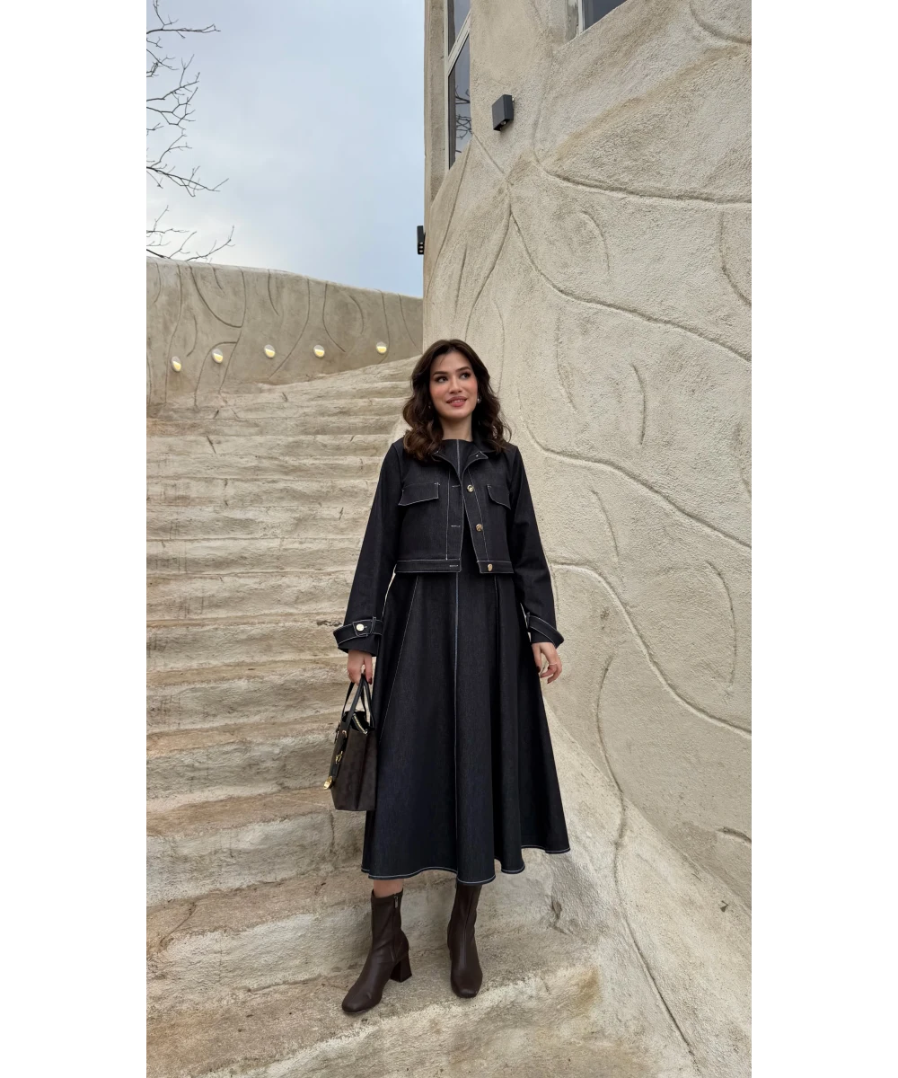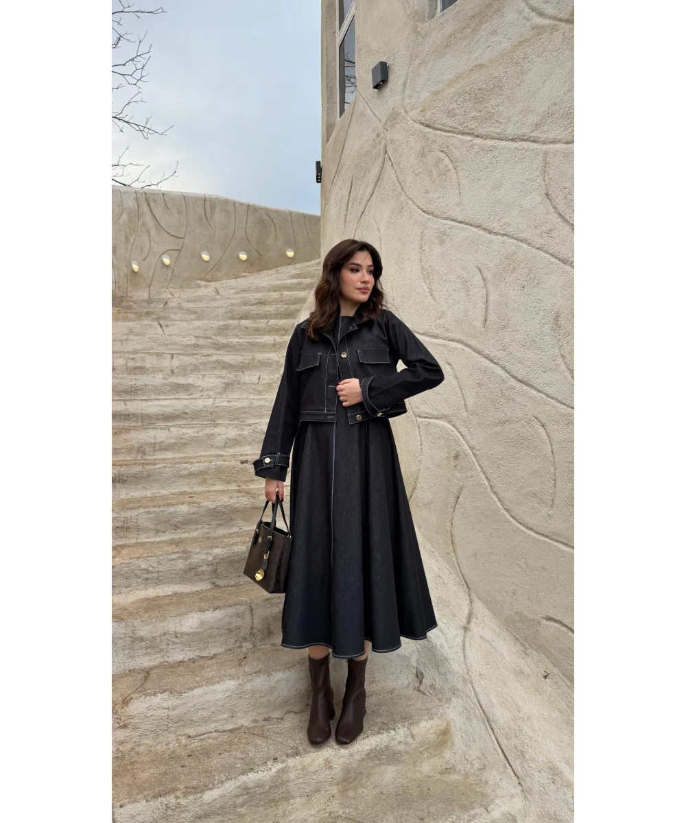 طقم فستان جينز مع جكيت ازرق