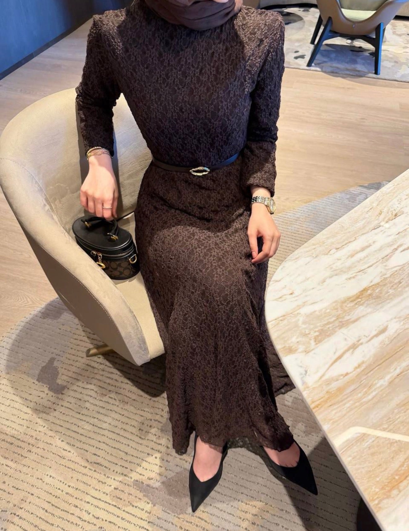 فستان دانتيل مع حزام