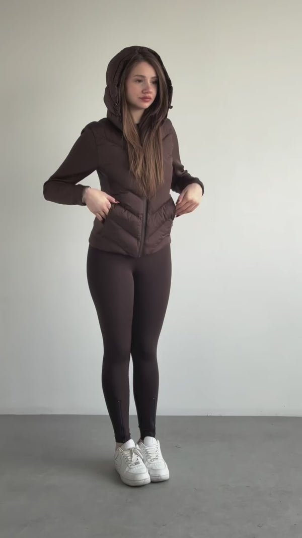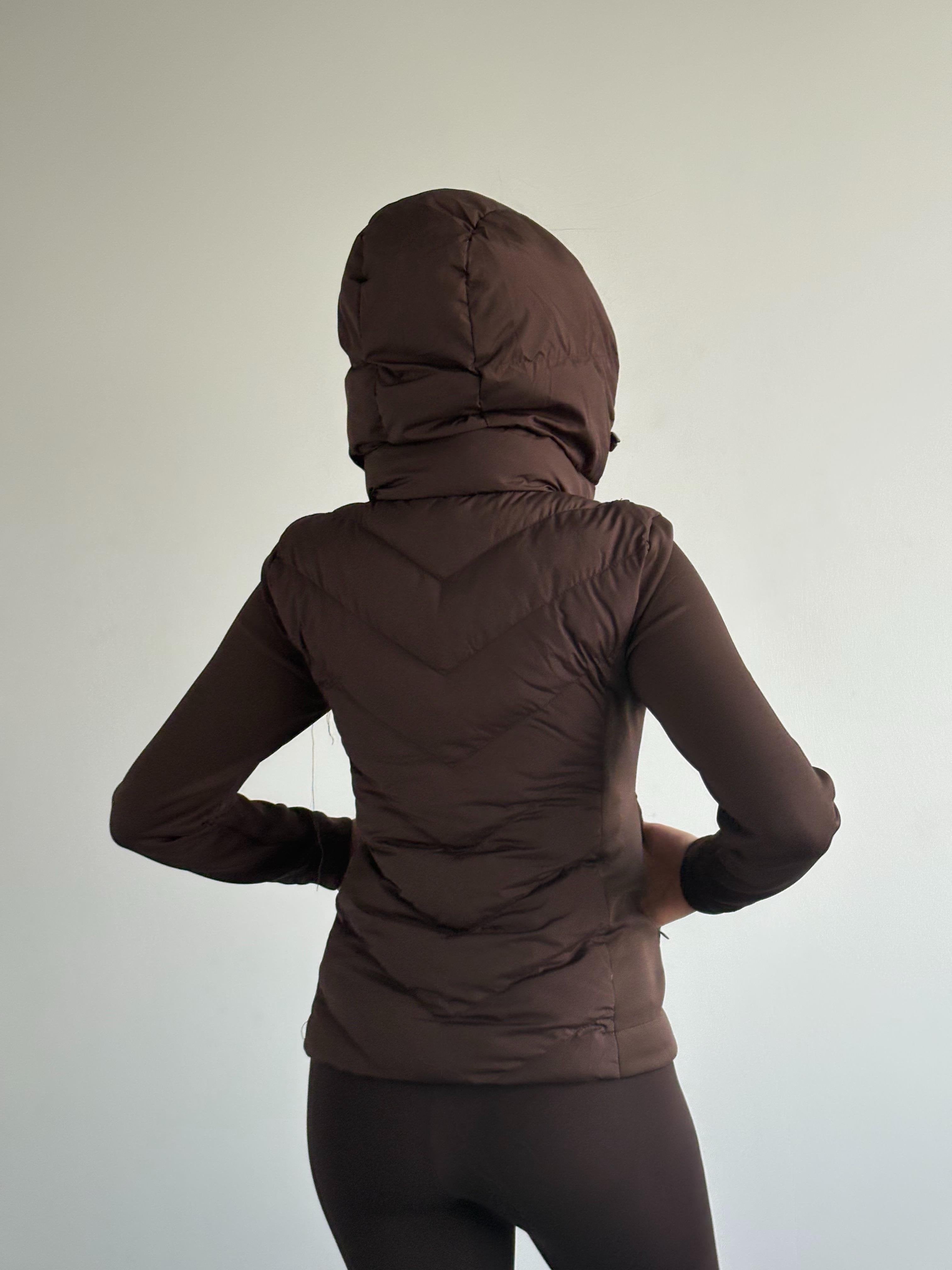 القبعة المدمجة توفّر حماية إضافية من الهواء، والسحاب الأمامي يسهّل الارتداء.