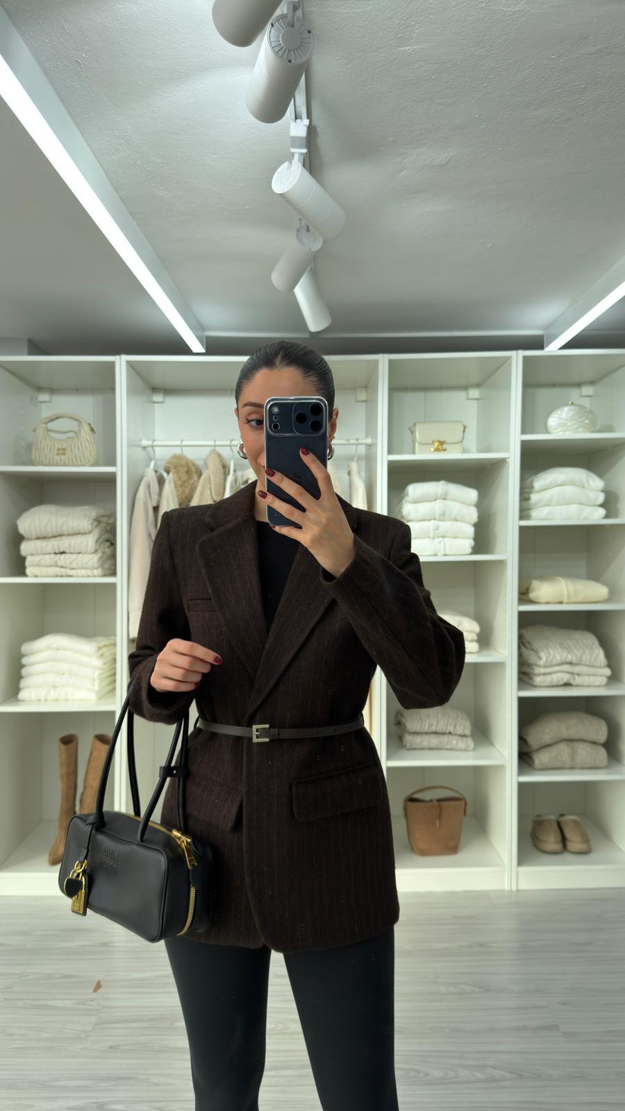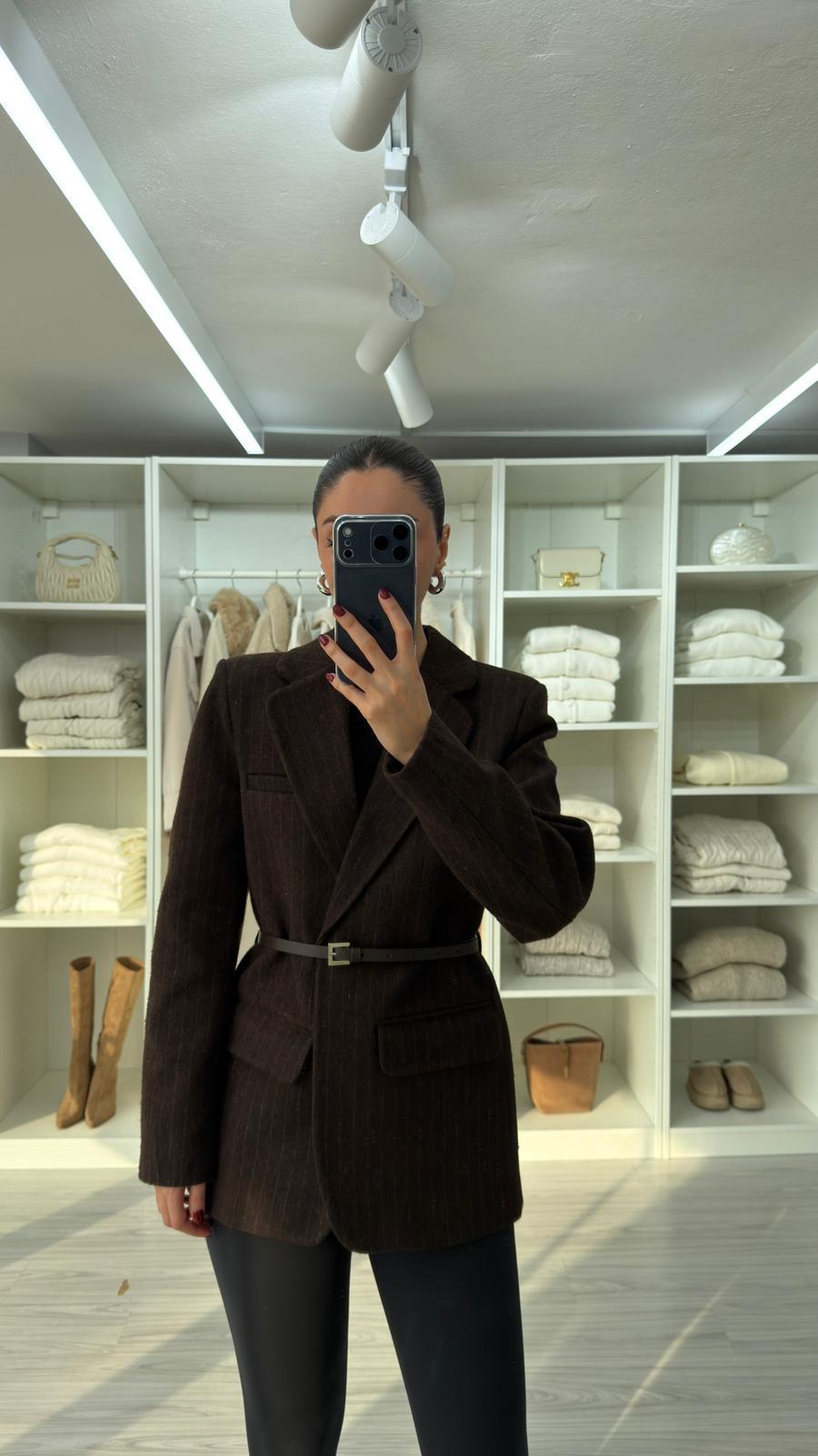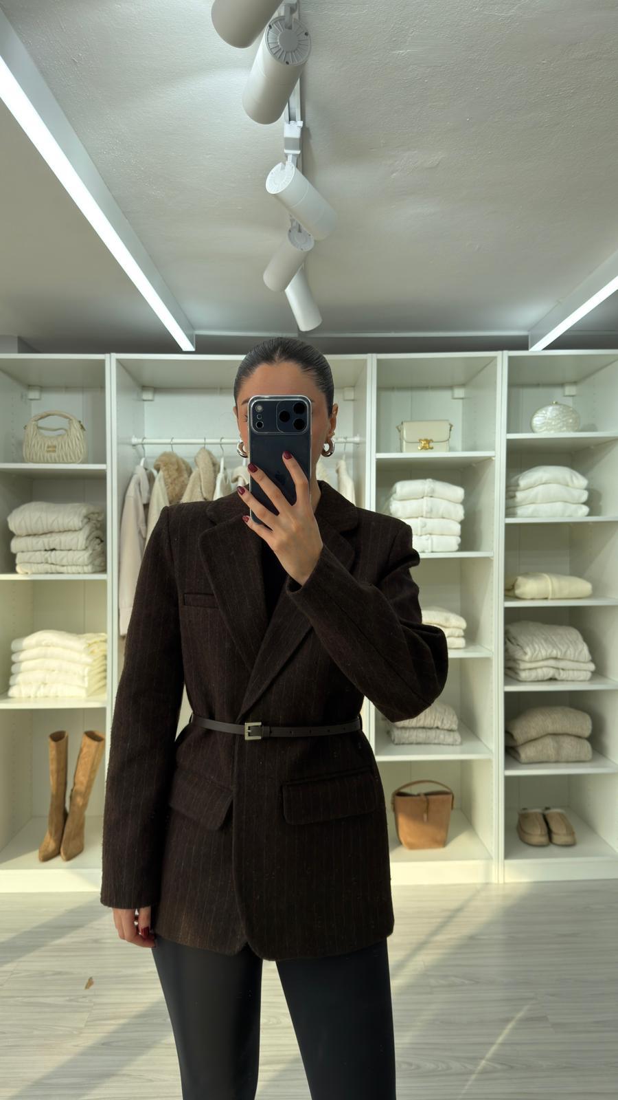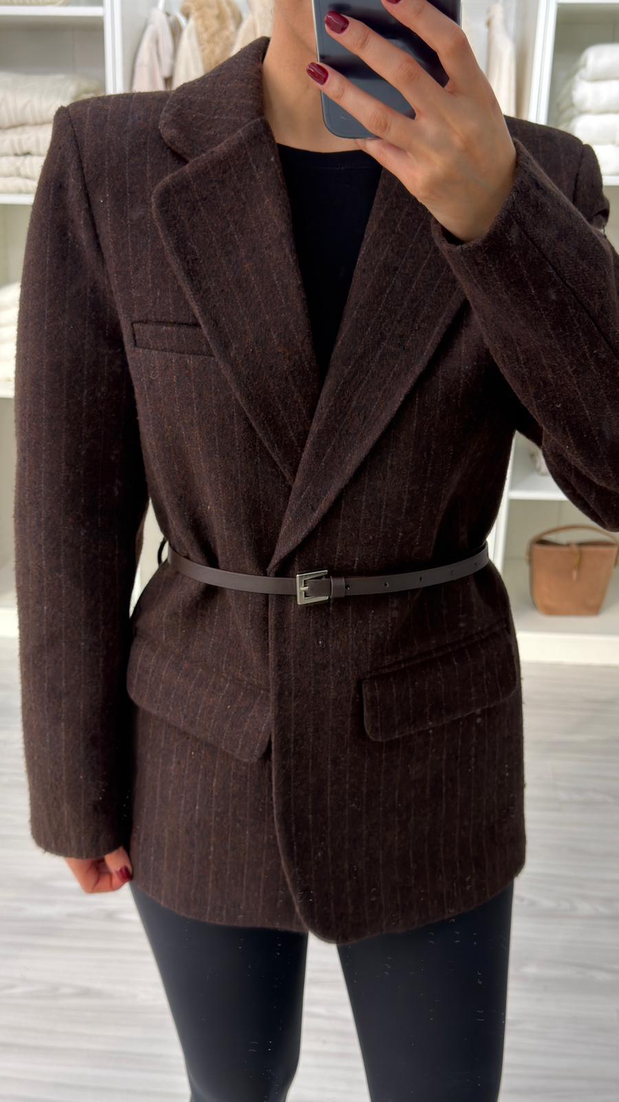 جاكيت كشمير فاخر مبطن مرفق مع حزام جلد