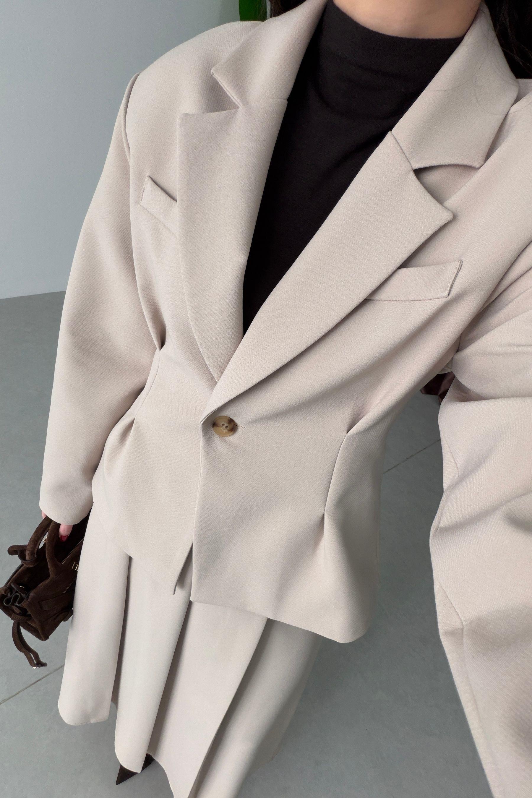 الجاكيت مبطن ومزود بأكتاف مبطنة.