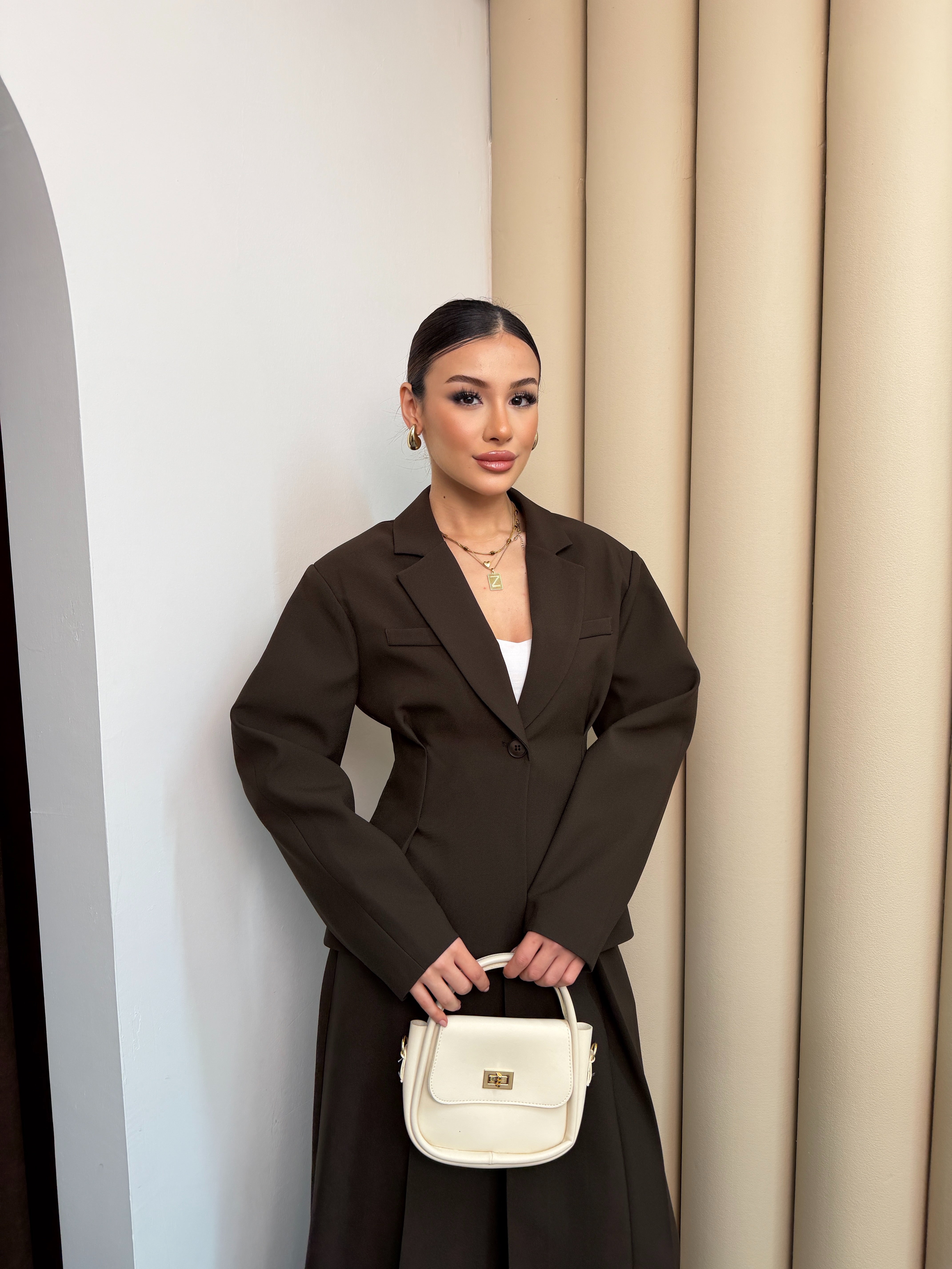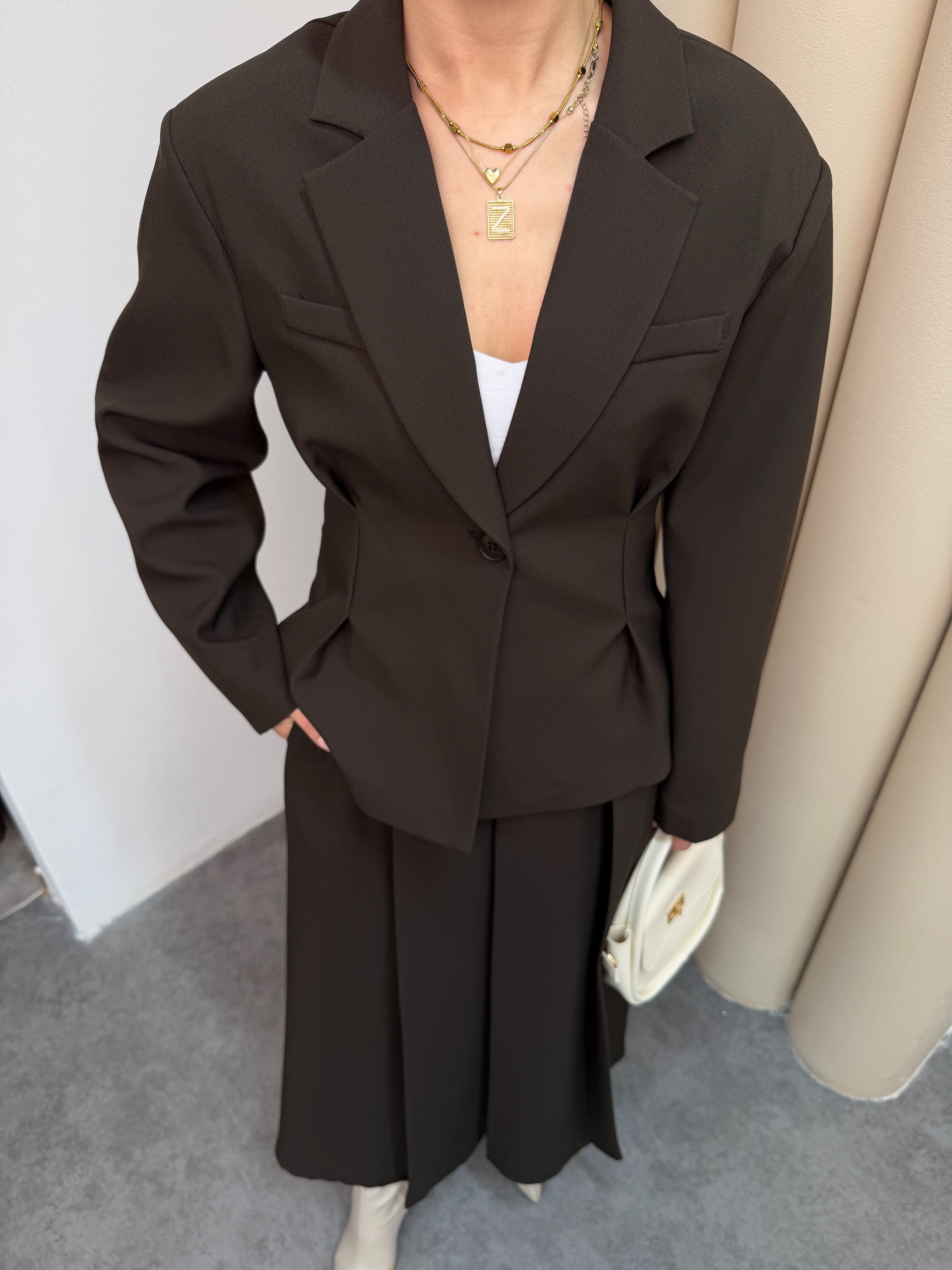 الجاكيت مبطن ومزود بأكتاف مبطنة.