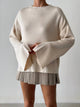 بلوز رمادي ذات رقبة دائرية محبوكة