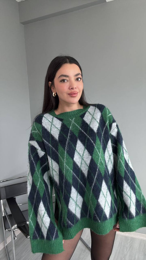بلوز صوف مخطط بقلاوة