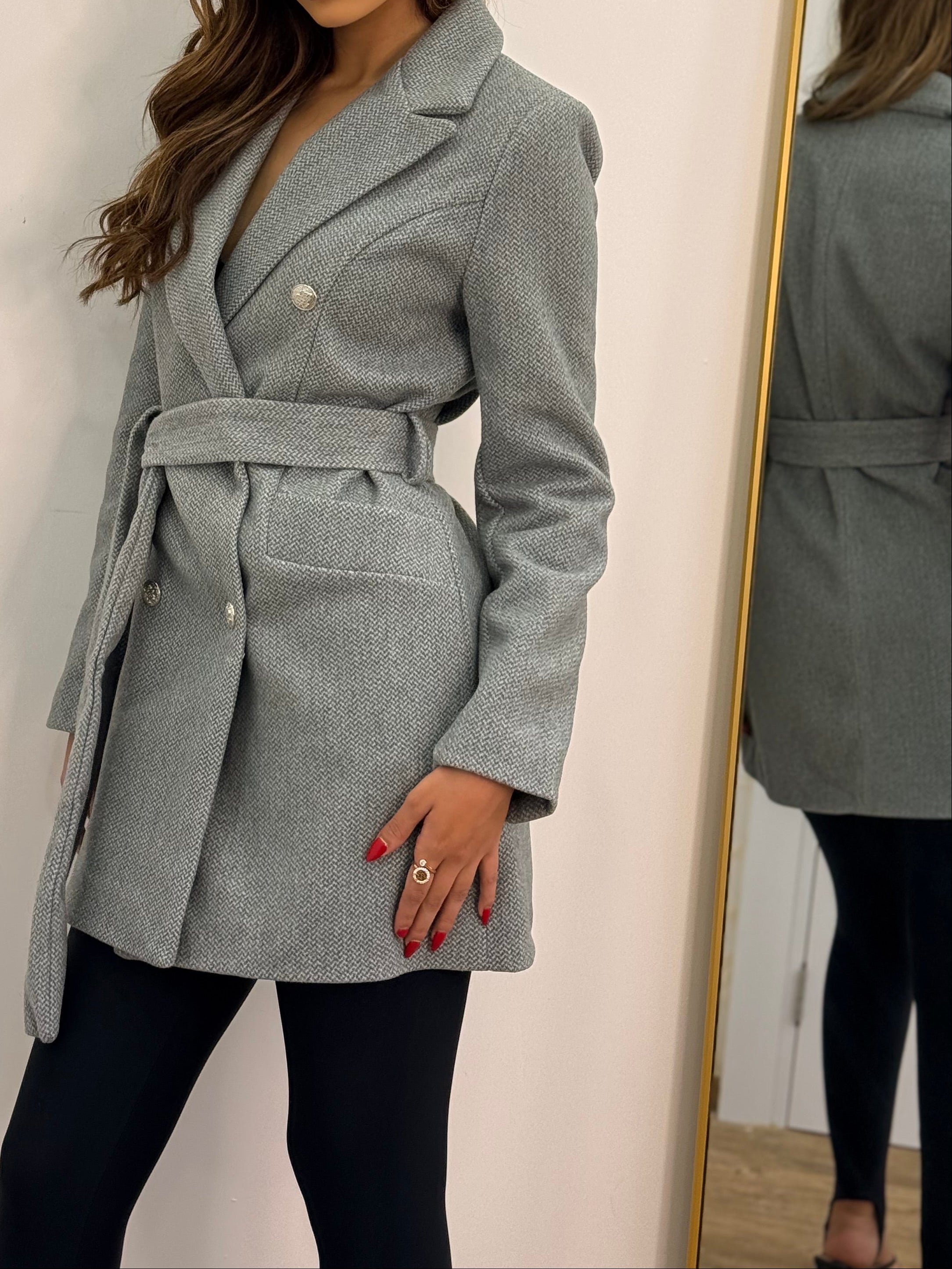 جكيت جوخ ربط ازرار ذهبية رمادي