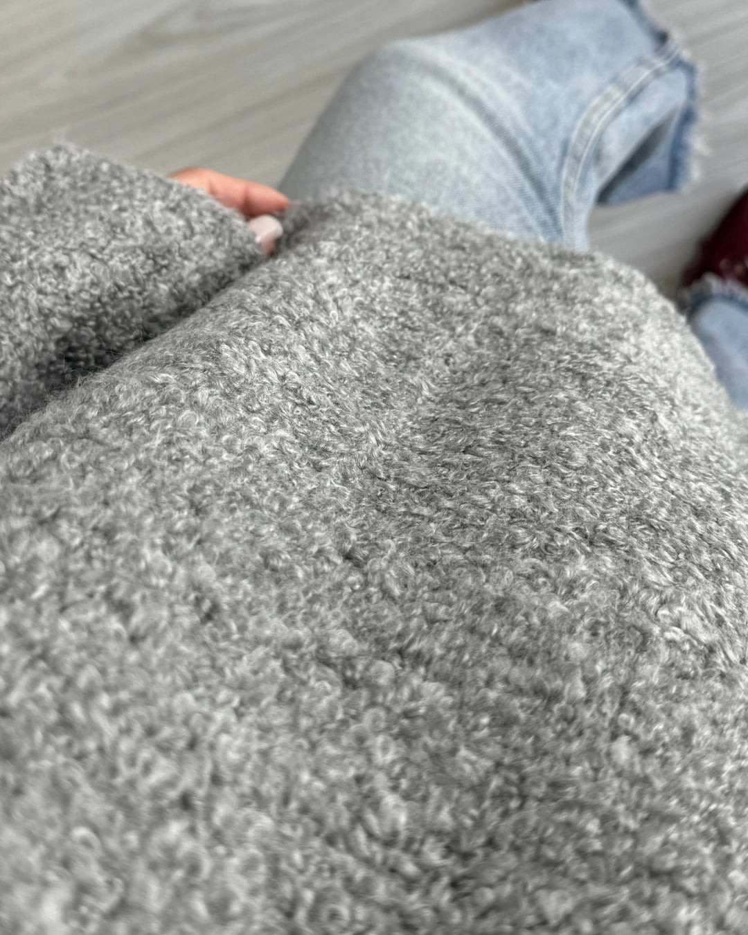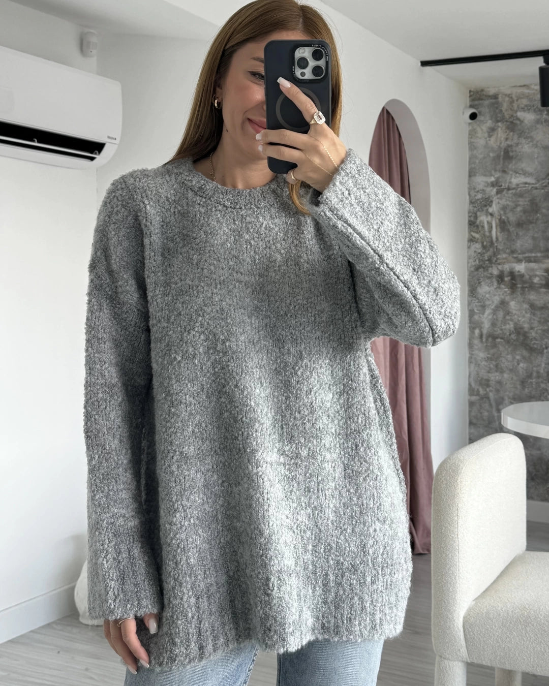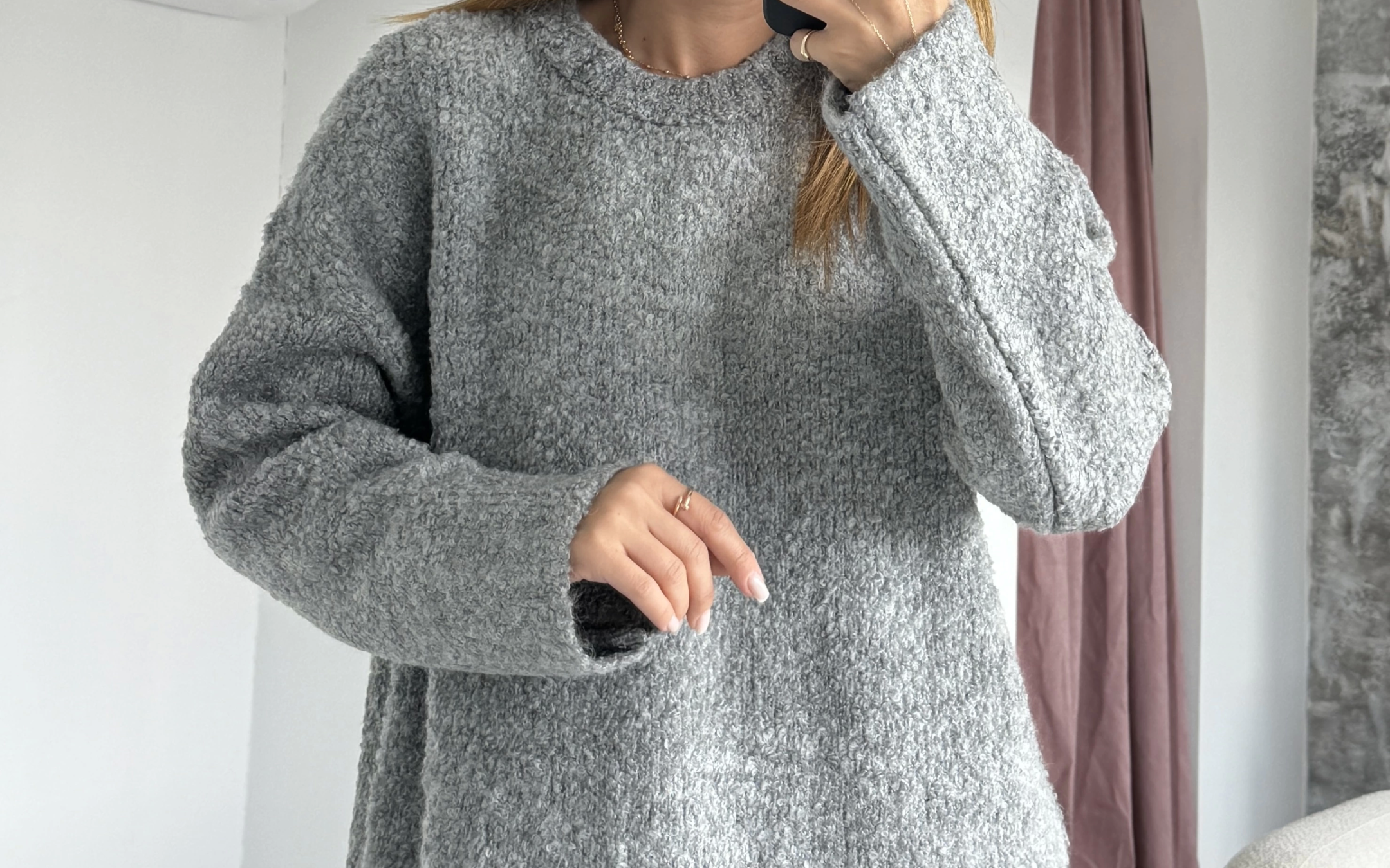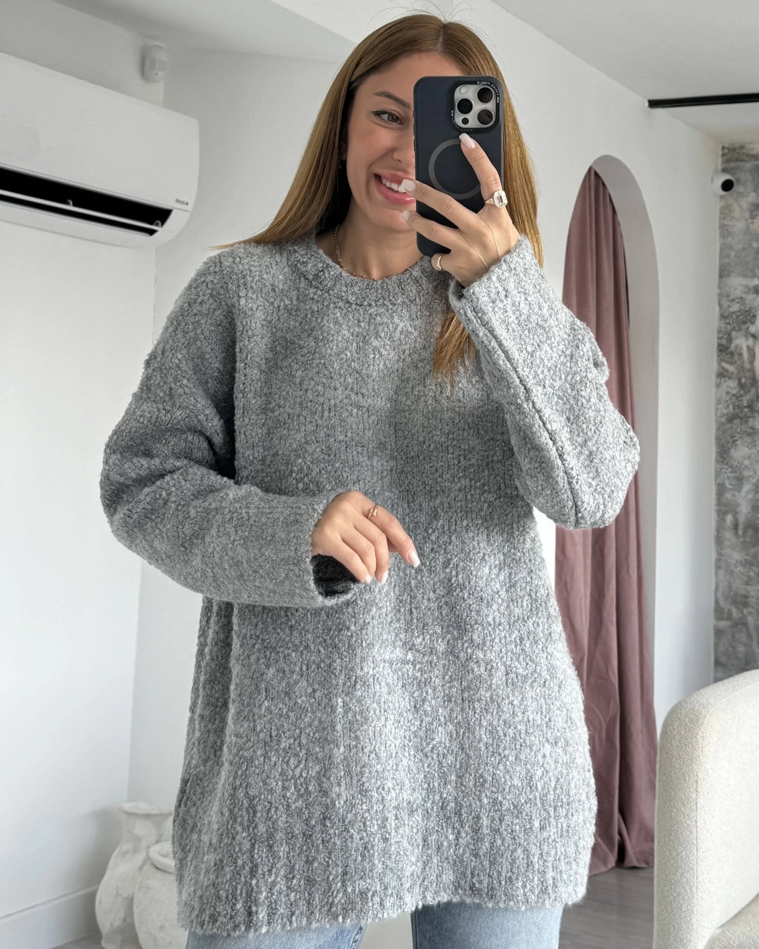 بلوز رمادي ذات رقبة دائرية محبوكة