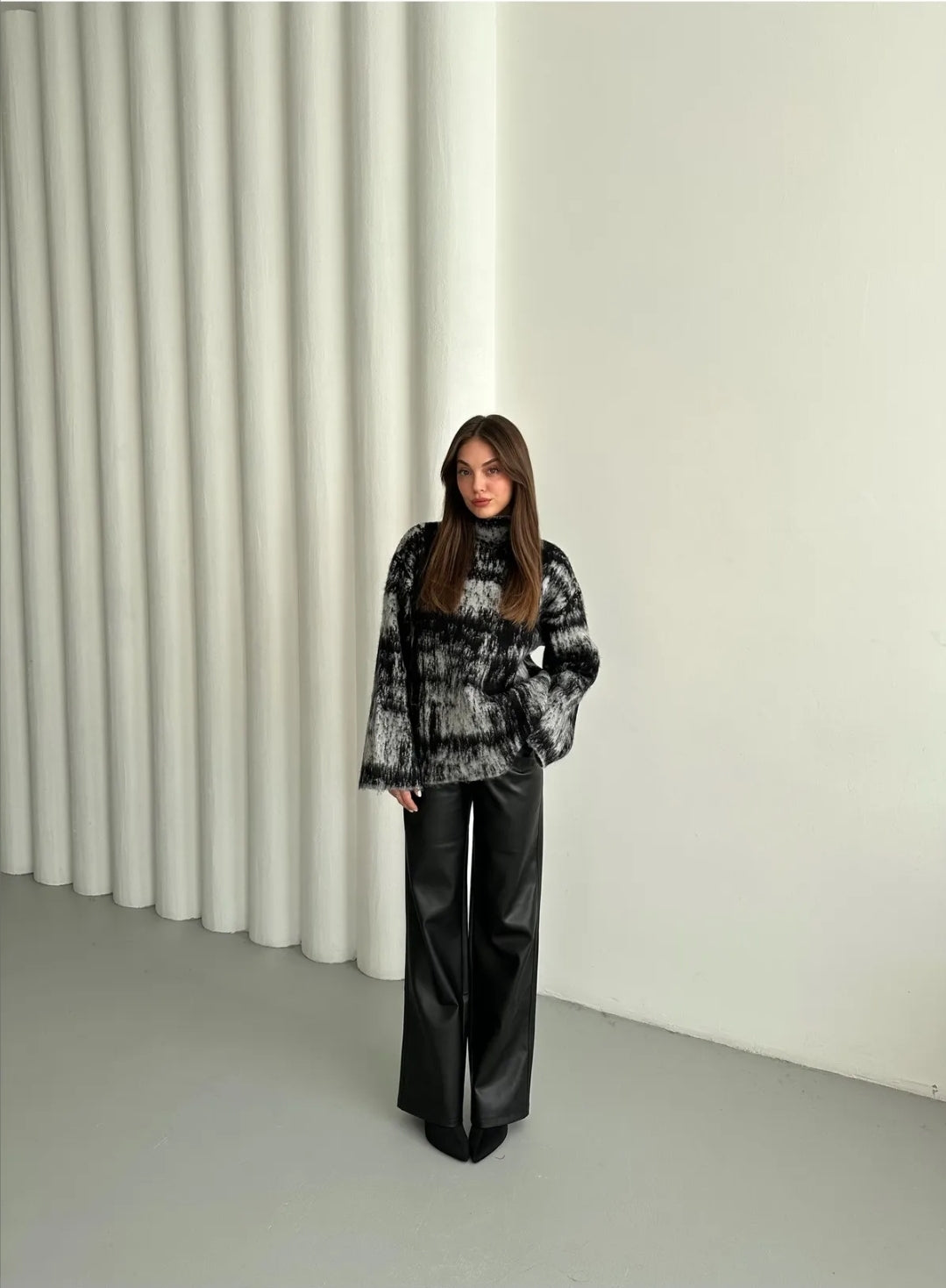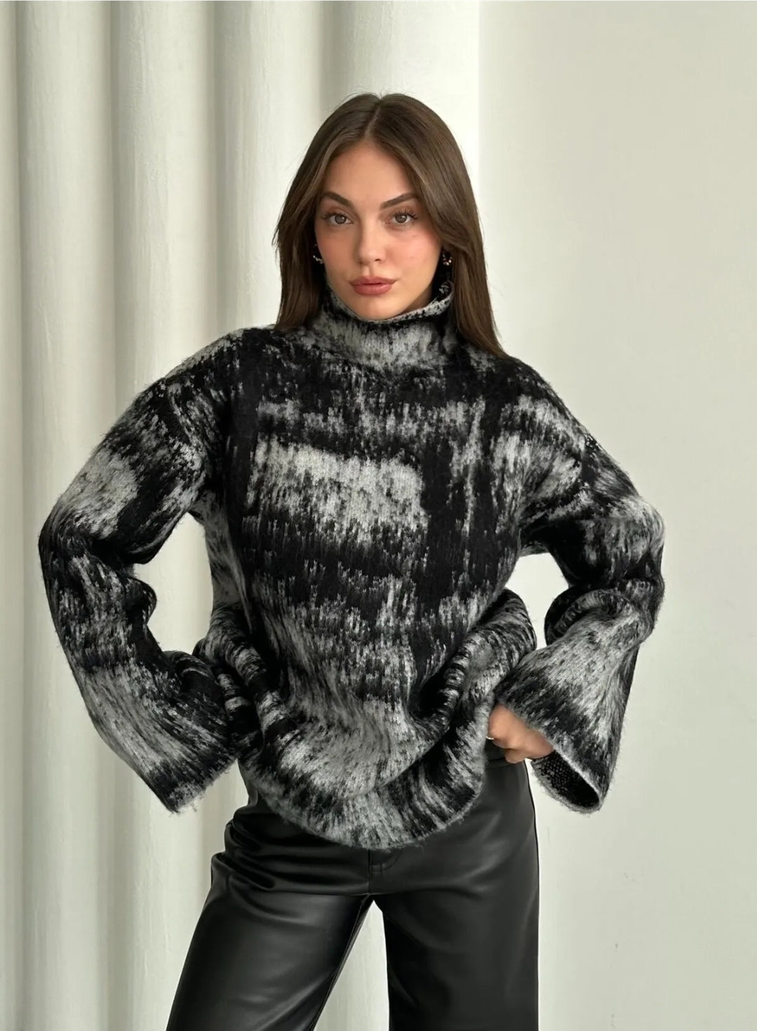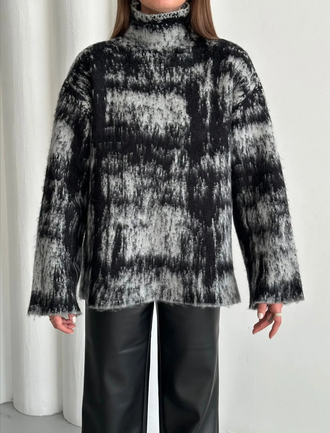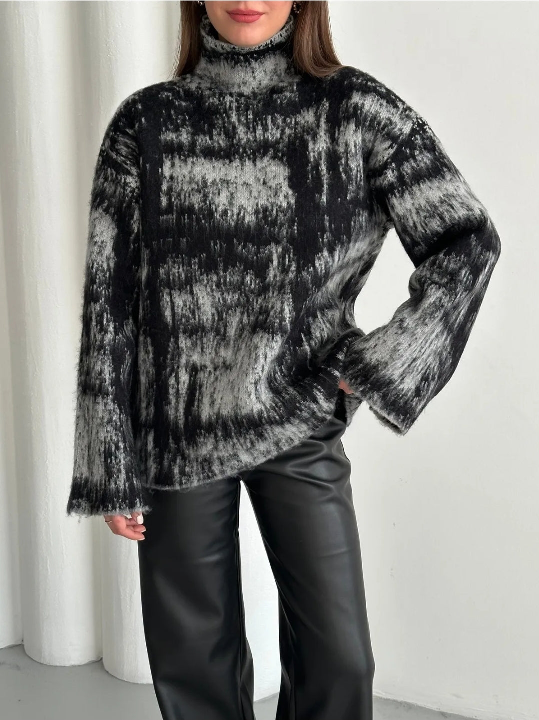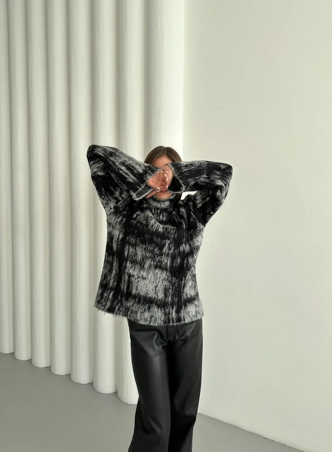 بلوزة بنقشه الجرافيك باللون الاسود والابيض