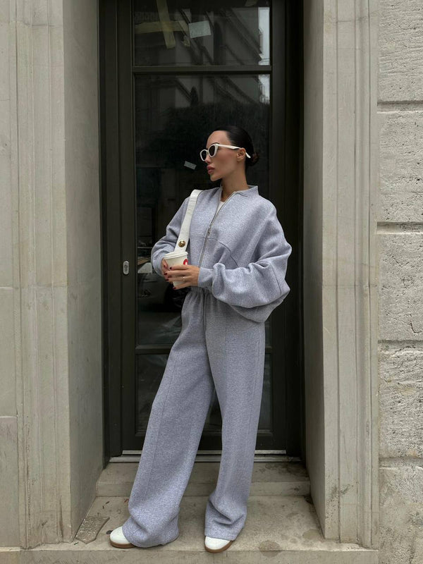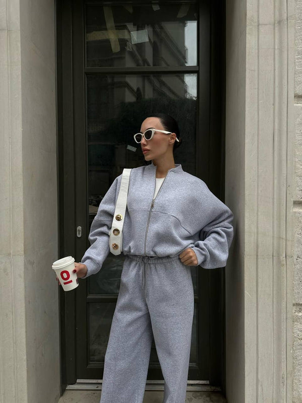 بدلة رياضية بسحاب باللون الرمادي - Sateen styleبدلة رياضية بسحاب باللون الرمادي - Sateen style