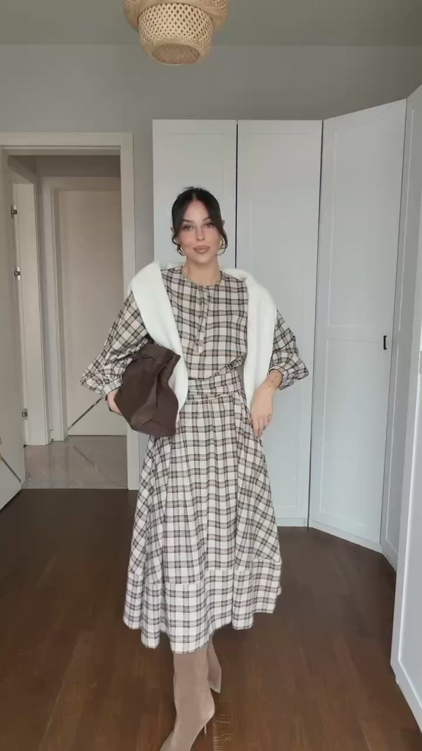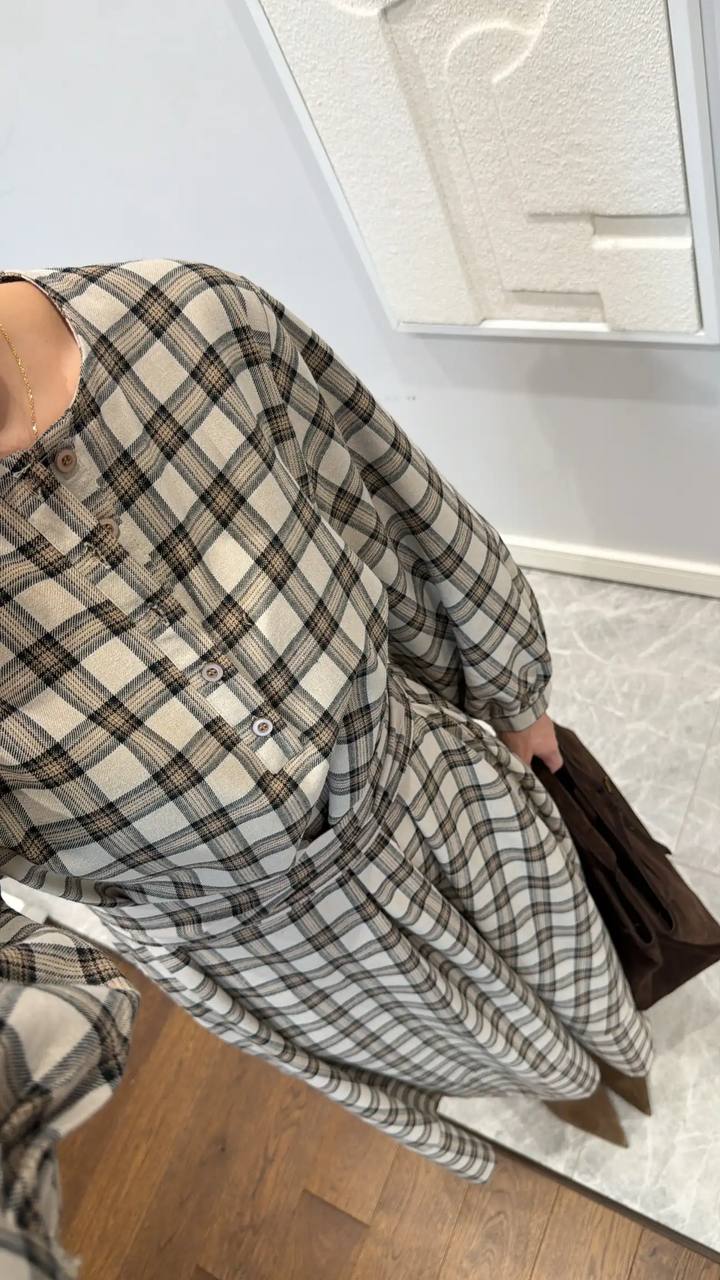 فستان أنيق بنقشة كاروهات كلاسيك يجمع بين البساطة والرقي 🌿