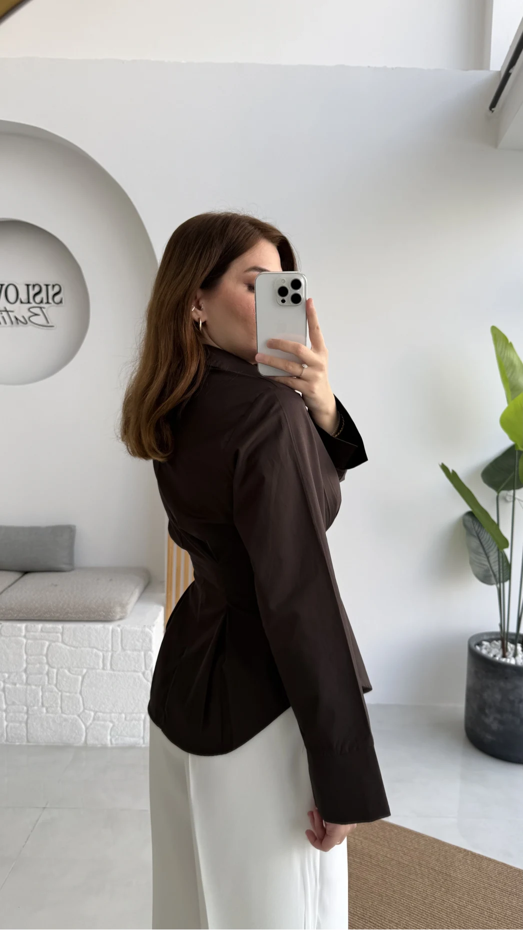 قميص أنيق مصنوع بقصة دقيقة تُبرز الخصر بأسلوب راقٍ، مع أزرار أمامية كلاسيكية وياقة رسمية تضيف لمسة فخامة. يتميز بتفاصيل قصّات جانبية تمنح شكلاً أنثوياً جذاباً دون المساس بالراحة. الأكمام الطويلة بقصّة واسعة خفيفة تضيف توازناً مثالياً للتصميم