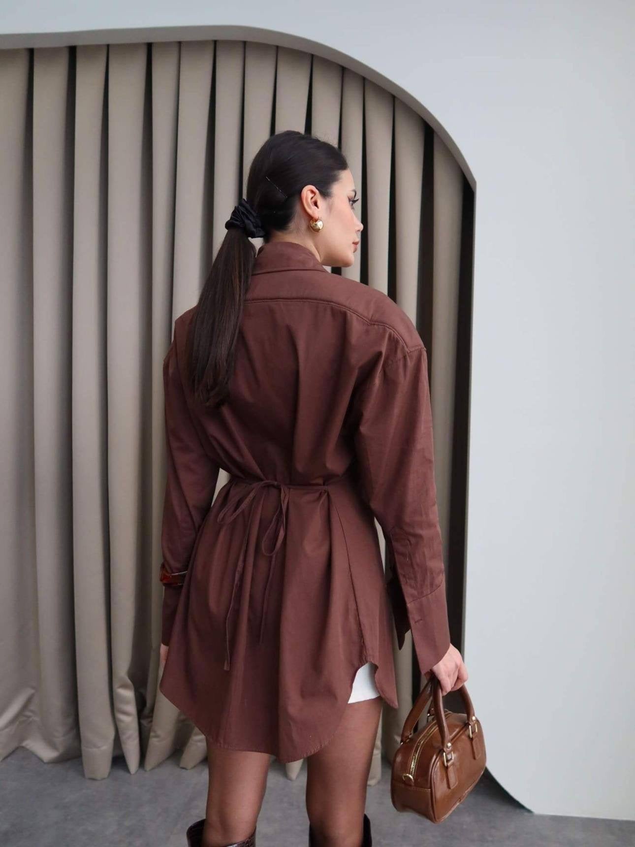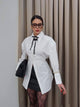 قميص أنيق مصنوع بقصة دقيقة تُبرز الخصر بأسلوب راقٍ، مع أزرار أمامية كلاسيكية وياقة رسمية تضيف لمسة فخامة. يتميز بتفاصيل قصّات جانبية تمنح شكلاً أنثوياً جذاباً دون المساس بالراحة. الأكمام الطويلة بقصّة واسعة خفيفة تضيف توازناً مثالياً للتصميم