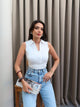 بلوز بودي حفر سحاب أمامية مع ياقة