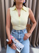 بلوز بودي حفر سحاب أمامية مع ياقة