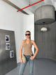 بلوز بودي حفر سحاب أمامية مع ياقة