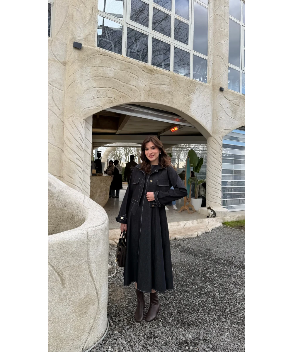 طقم فستان جينز ازرق