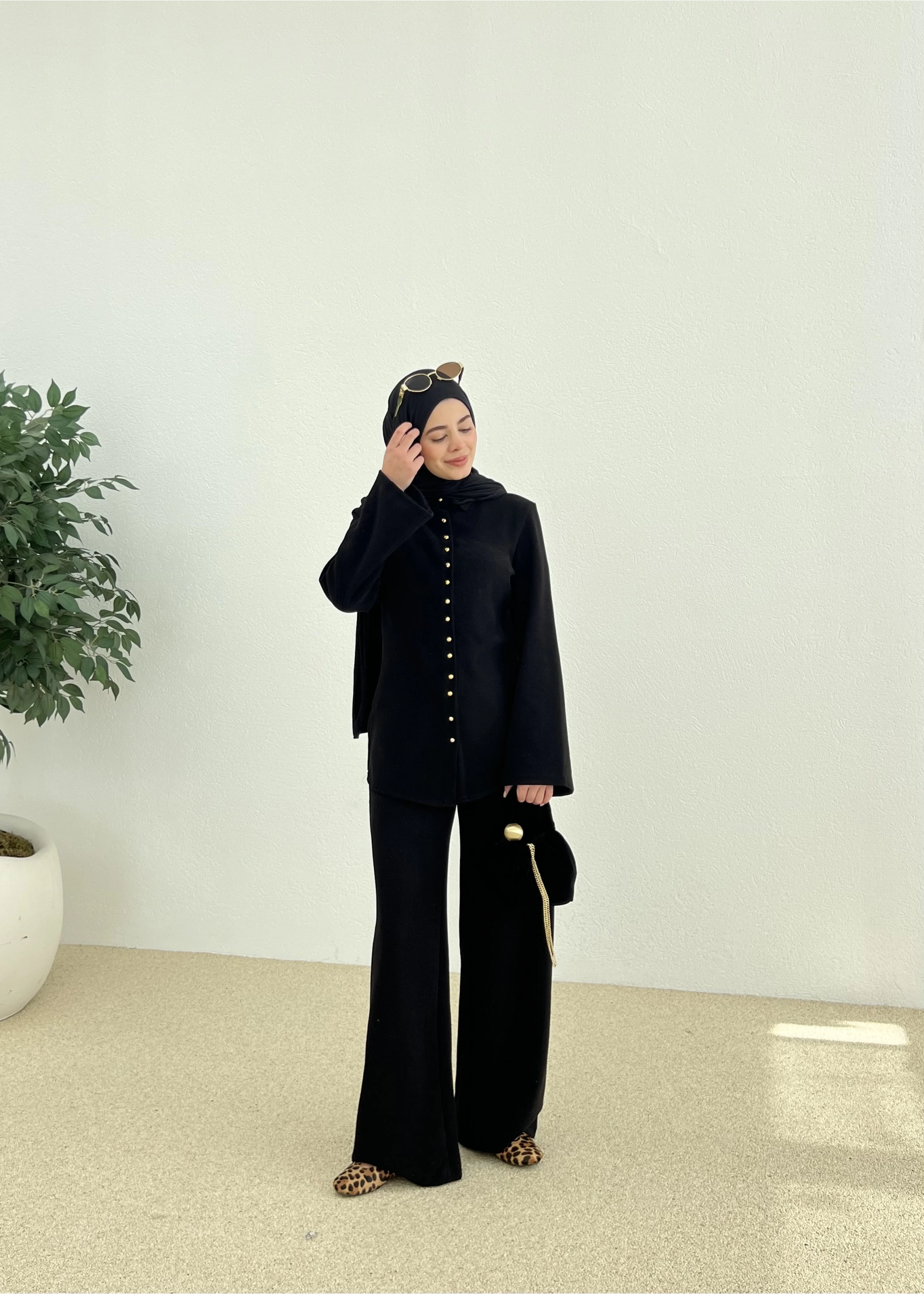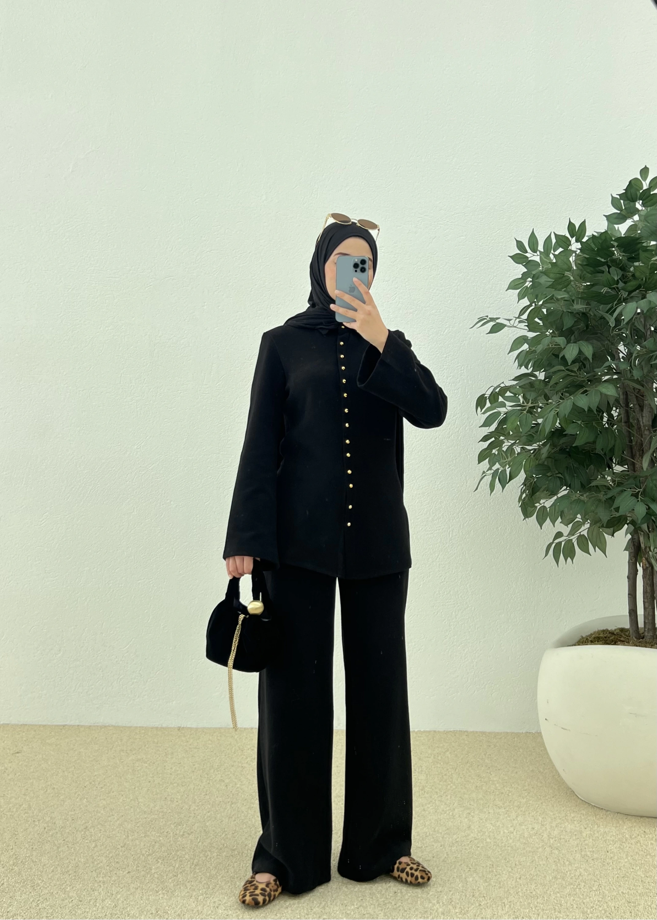 يأتي مع بنطال بقصّة مستقيمة تعكس حضوراً عملياً وأنثوياً في آن واحد.