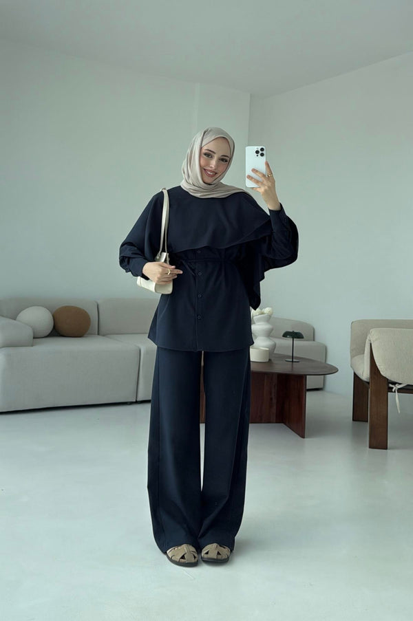 طقم قطعتين مع بنطلون Palazzo- كحلي