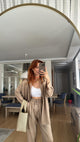 طقم ناعم مكوّن من قميص بأكمام طويلة ،طول الجكيو 75 سم وبنطال بخصر مطاطي مريح طول ٩٣ سم. مناسب للمحجبات، بقصة مستقيمة وانسيابية، مثالي للإطلالات اليومية والأنيقة.