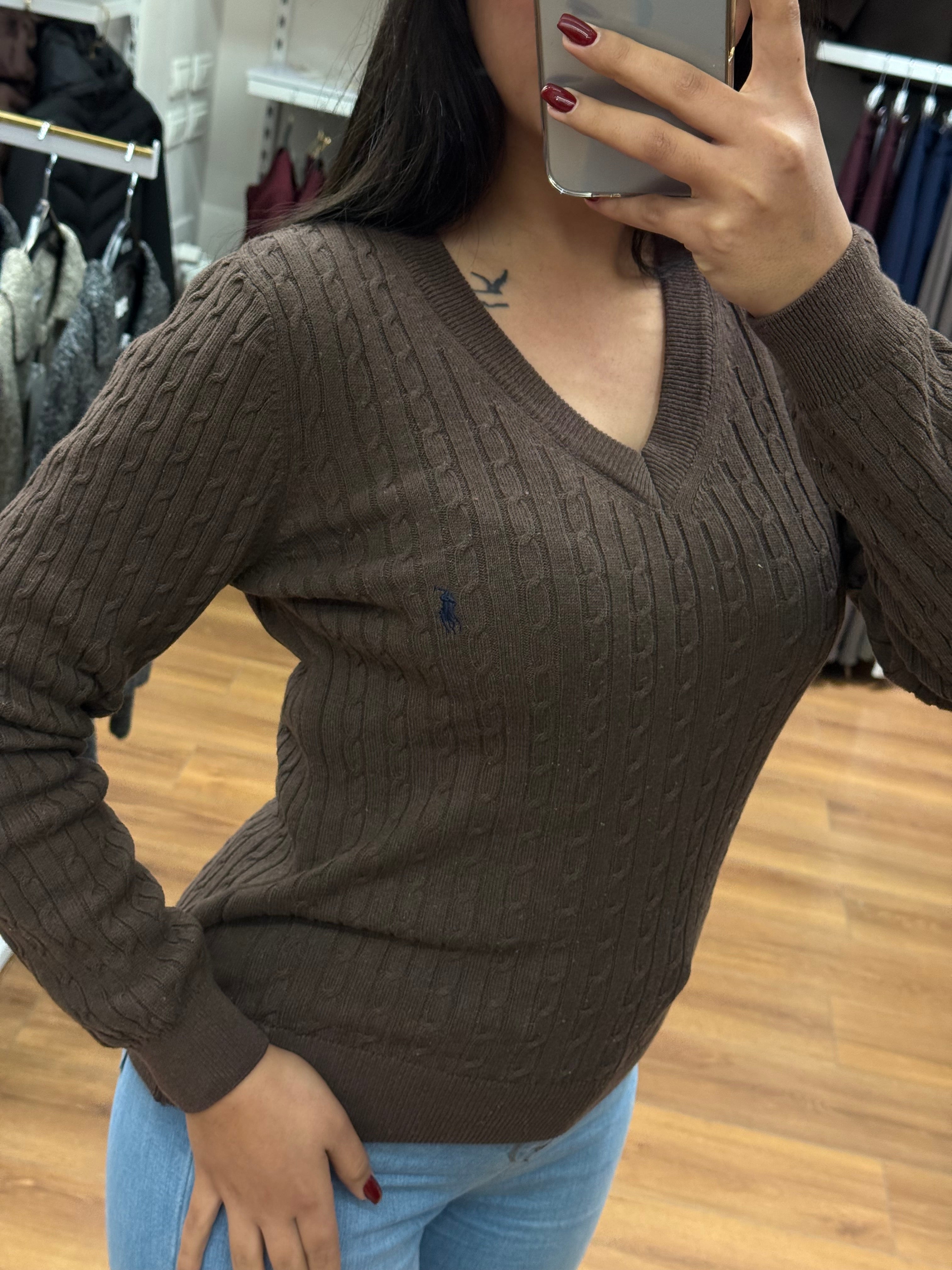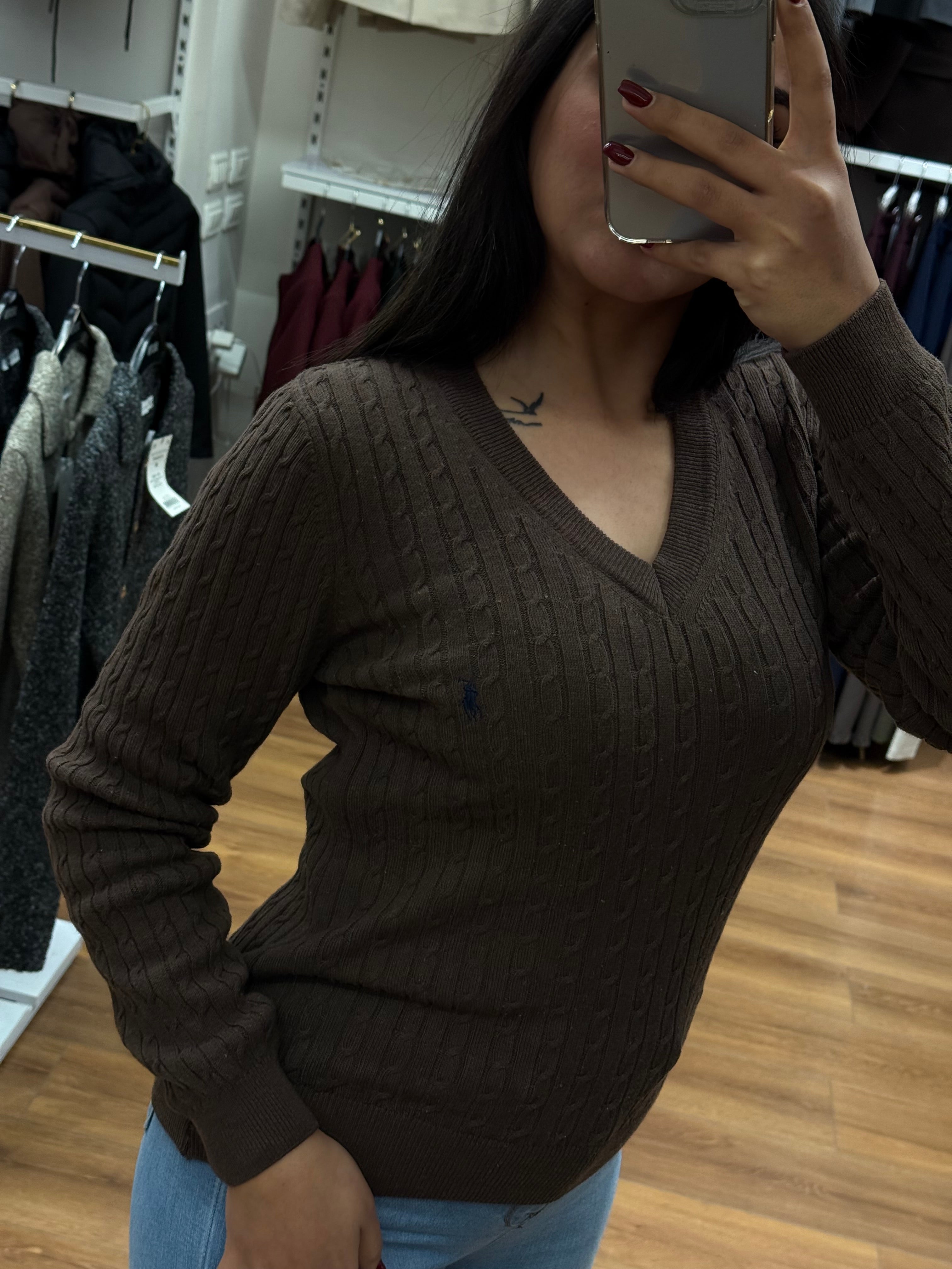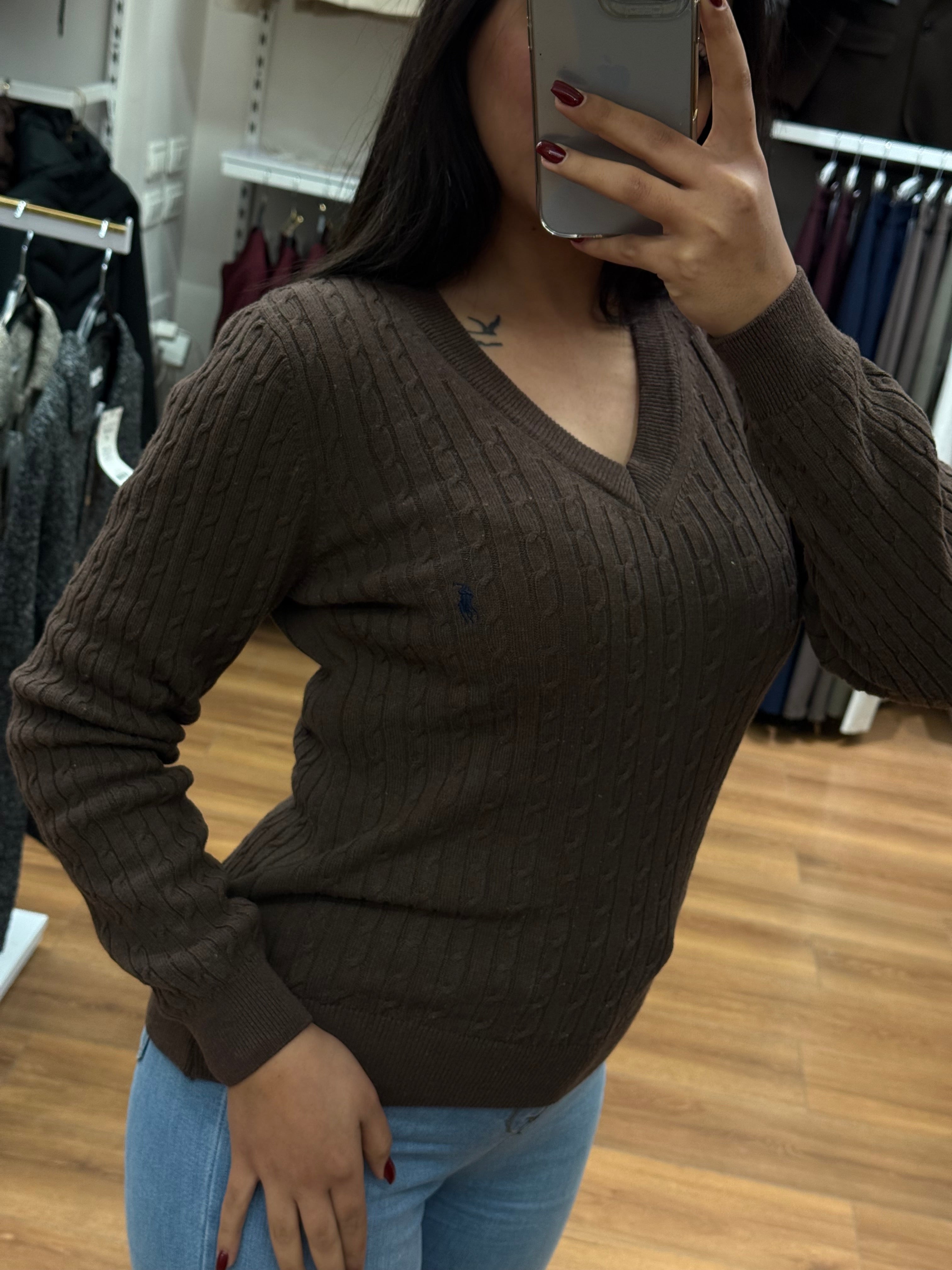 بلوزة بولو رالف لورين محبوك على شكل V