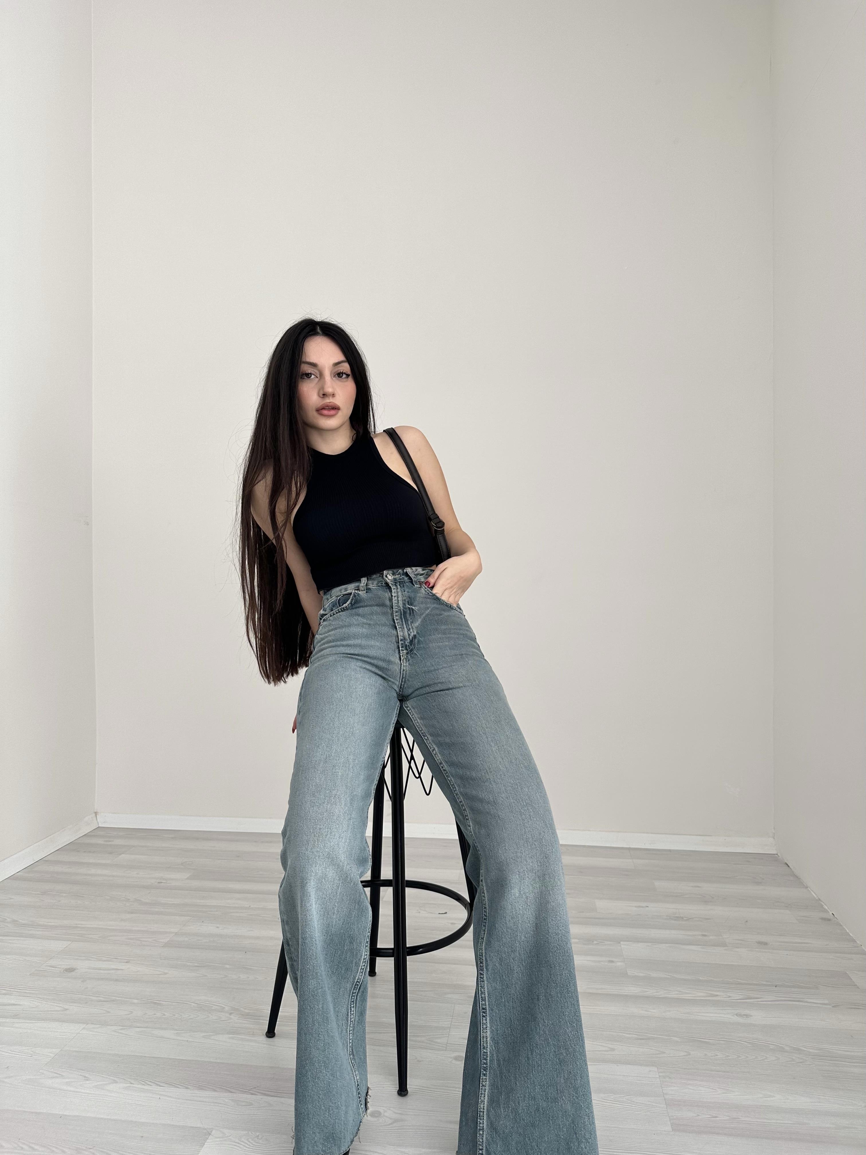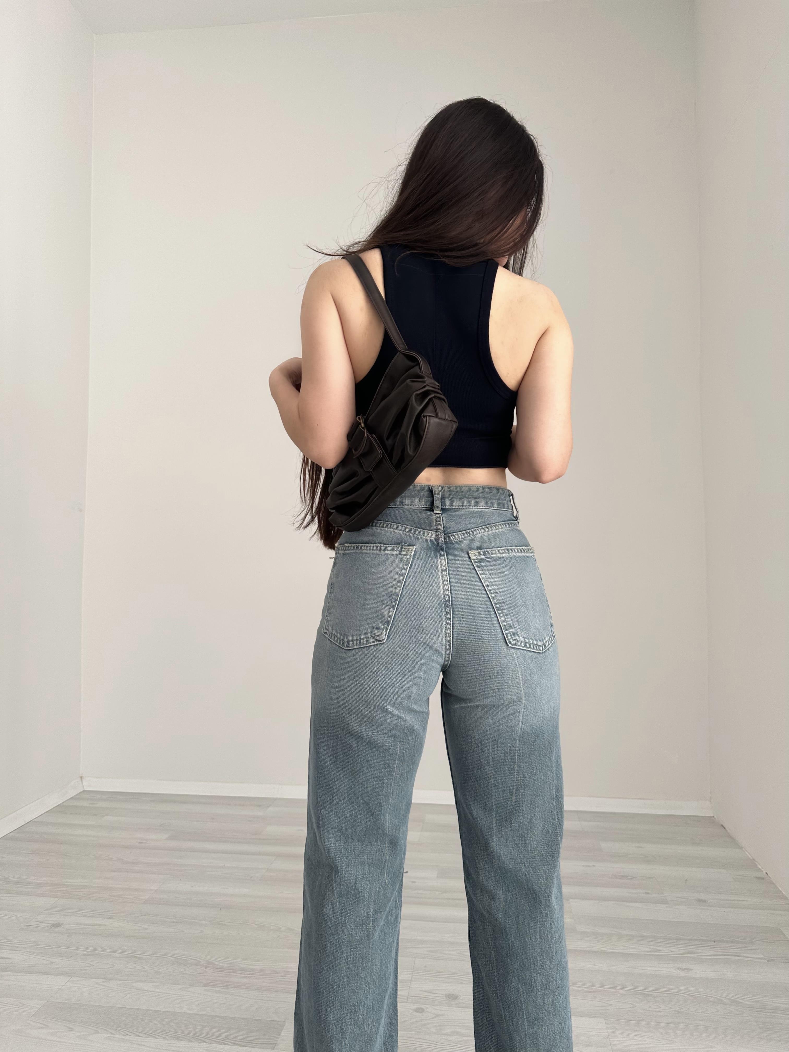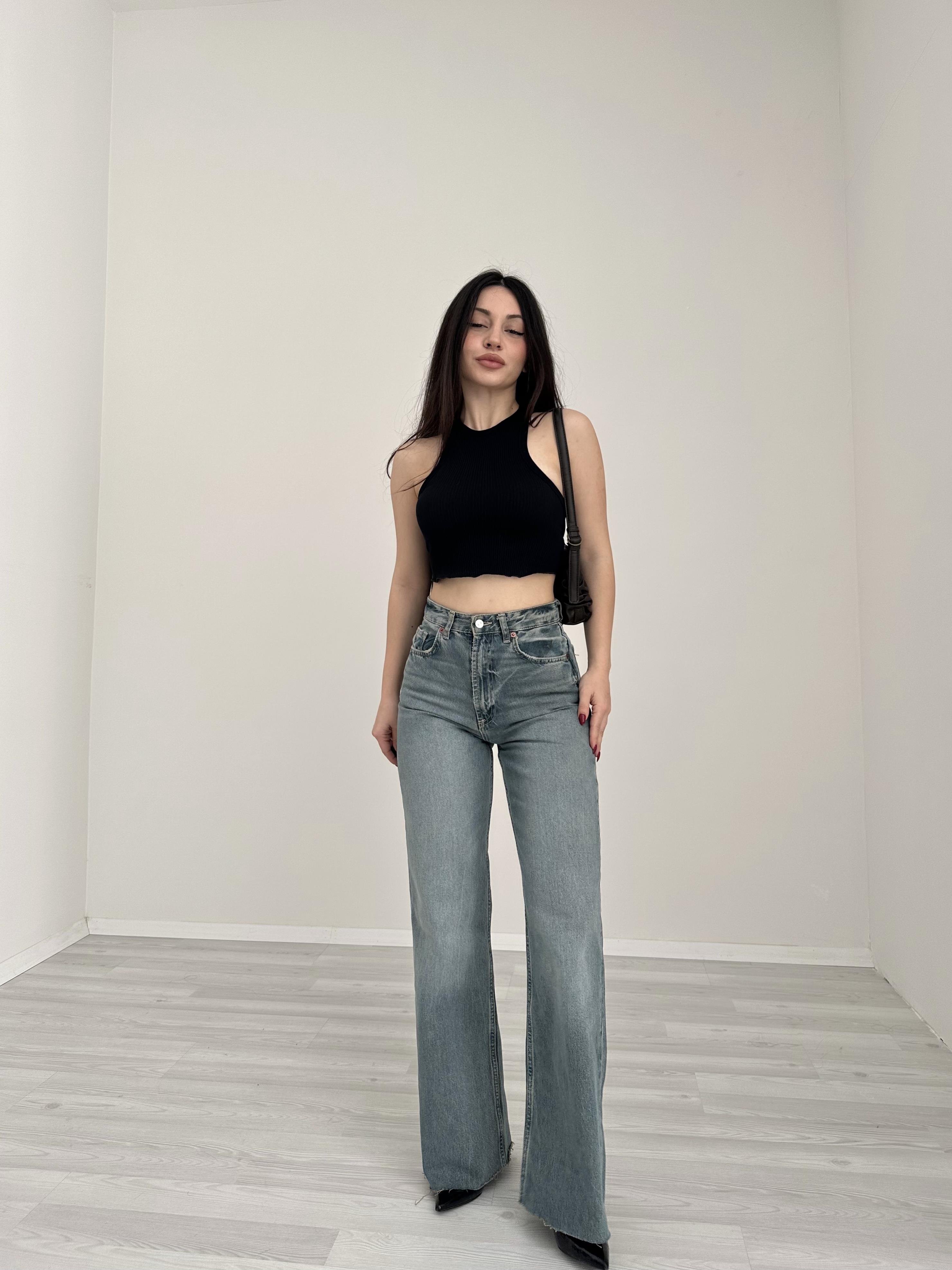 بنطال جينز واسع الساق بخصر عالٍ من ZR TRF (صدئ)