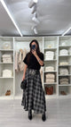تنورة طويلة بقصة واسعة وانسيابية، مصممة بنقشة الكاروه الكلاسيكية باللون الخمري مع خطوط فاتحة أنيقة. مصنوعة من قماش مريح وعالي الجودة، تمنح مظهراً أنثوياً راقياً ومناسبة للاستخدام اليومي والمناسبات البسيطة. سهلة التنسيق مع مختلف القطع، وتناسب الإطلالات المحتشمة والعصرية في آنٍ واحد.