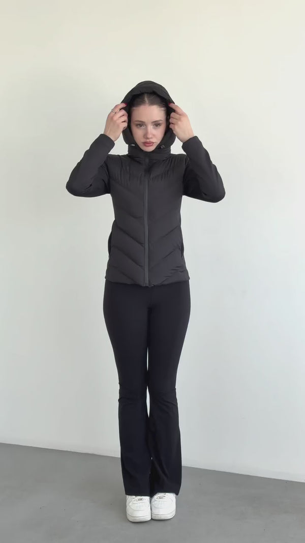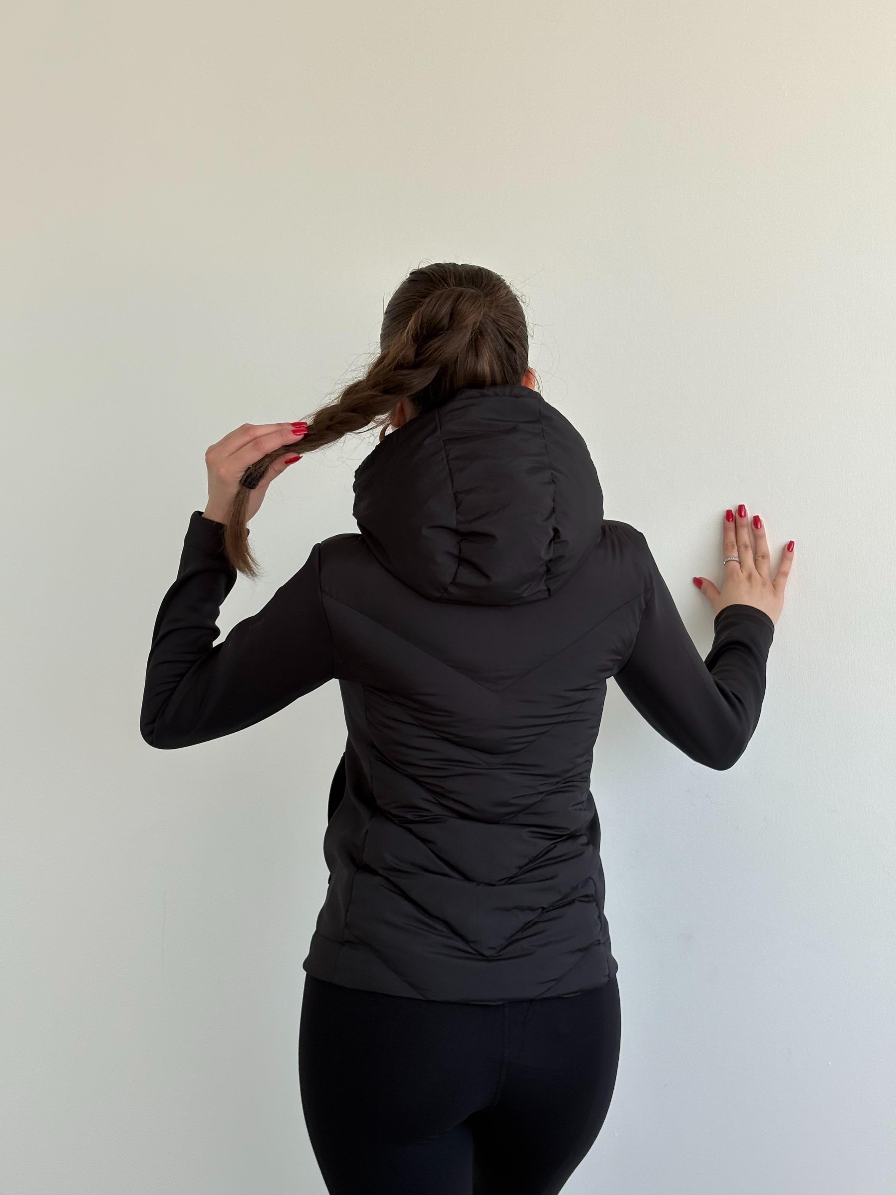 القبعة المدمجة توفّر حماية إضافية من الهواء، والسحاب الأمامي يسهّل الارتداء.