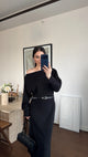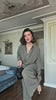 طقم مكوّن من قميص بقصّة مريحة مع تفصيلة لفّ ناعمة عند الخصر، وبنطال واسع يعطي انسيابية وأناقة بالحركة. التصميم يجمع بين البساطة والفخامة، مناسب للإطلالات اليومية الراقية أو للّبس العملي والمناسبات غير الرسمية