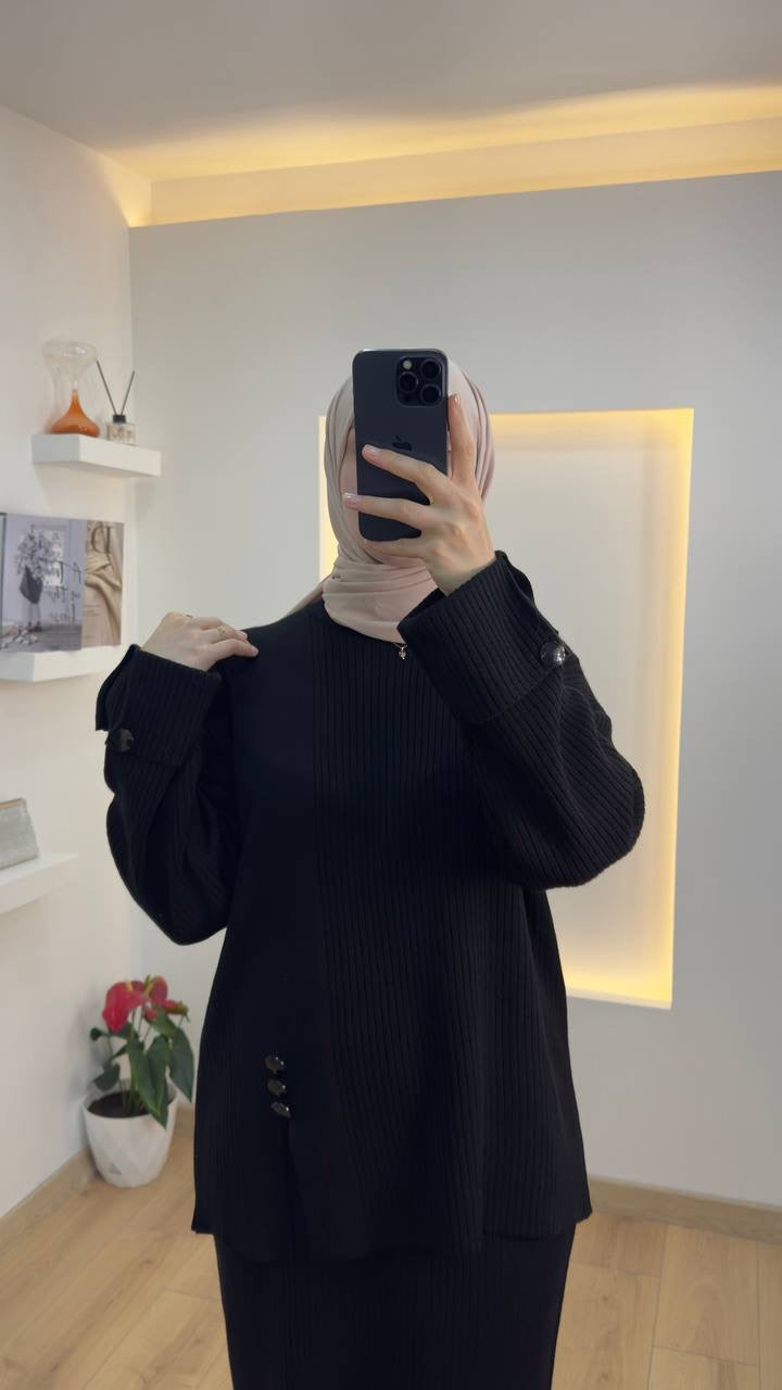 طقم تنوره تريكو بأزرار جانبية