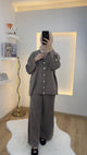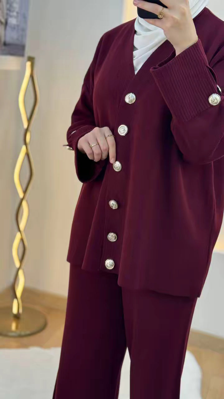 طقم صوف تريكو بازرار ذهبية باللون الخمري