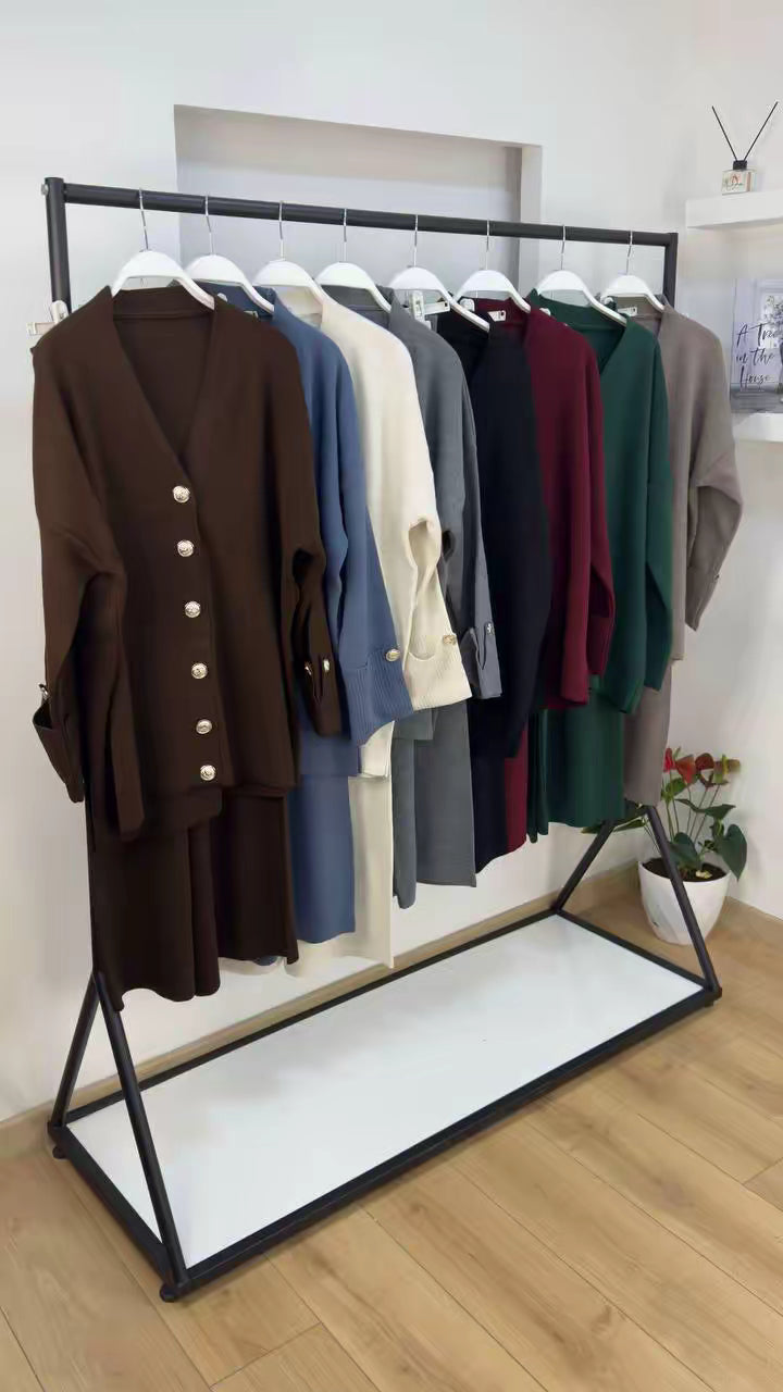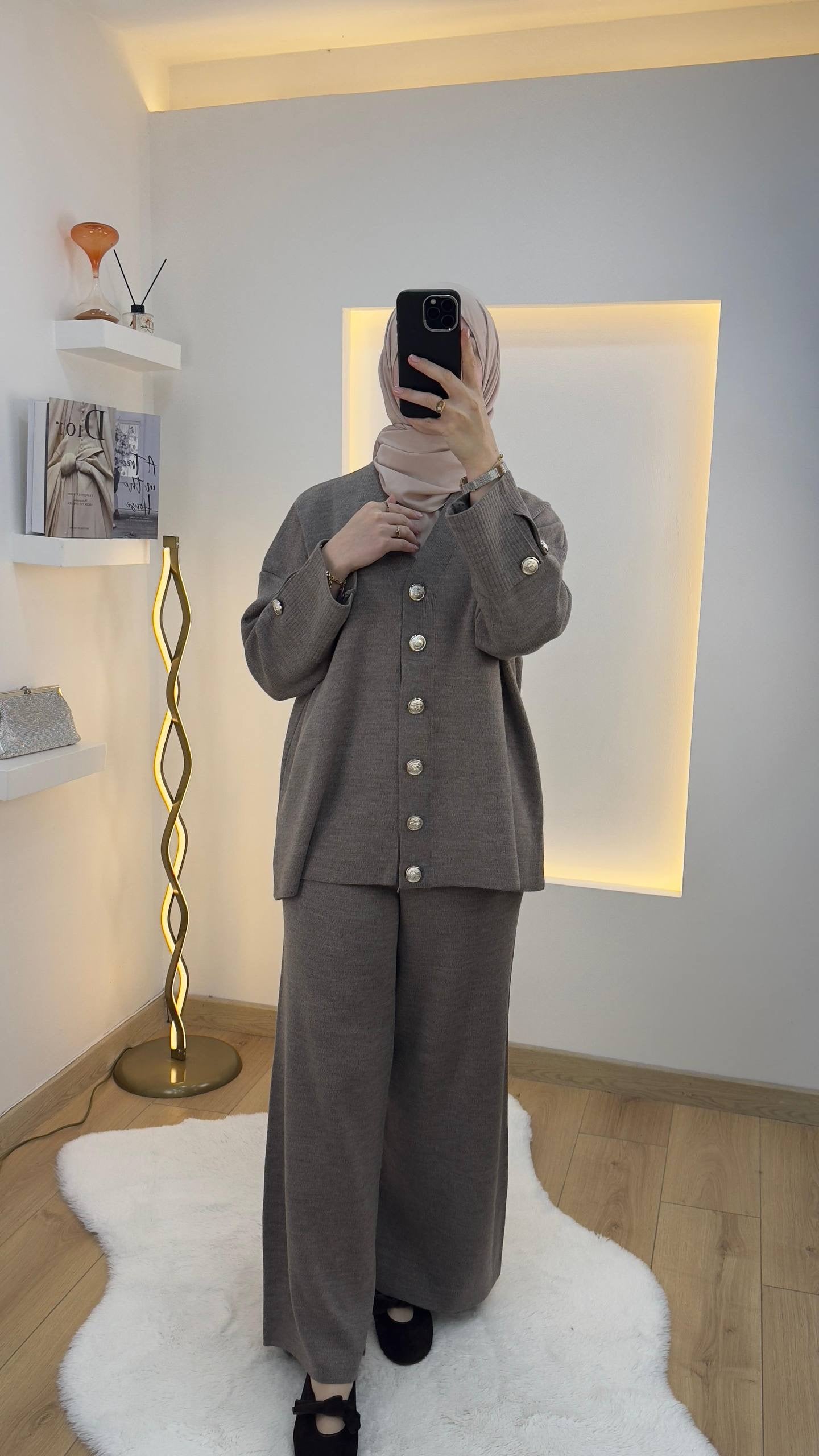 طقم صوف تريكو بازرار ذهبية باللون البني مائل للرمادي