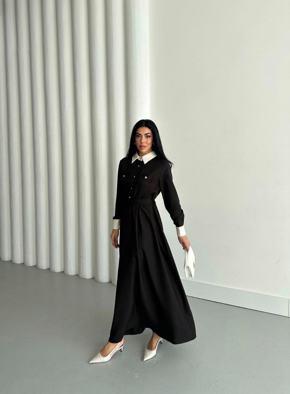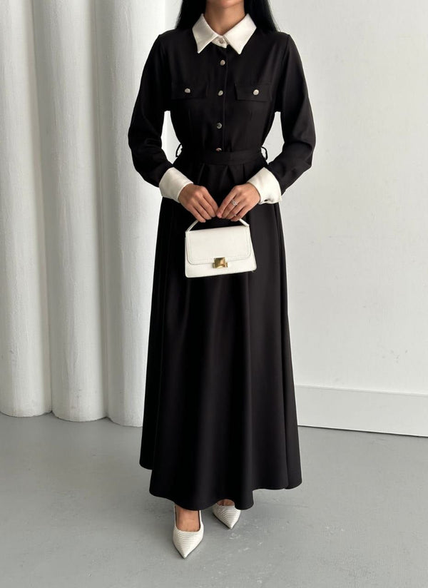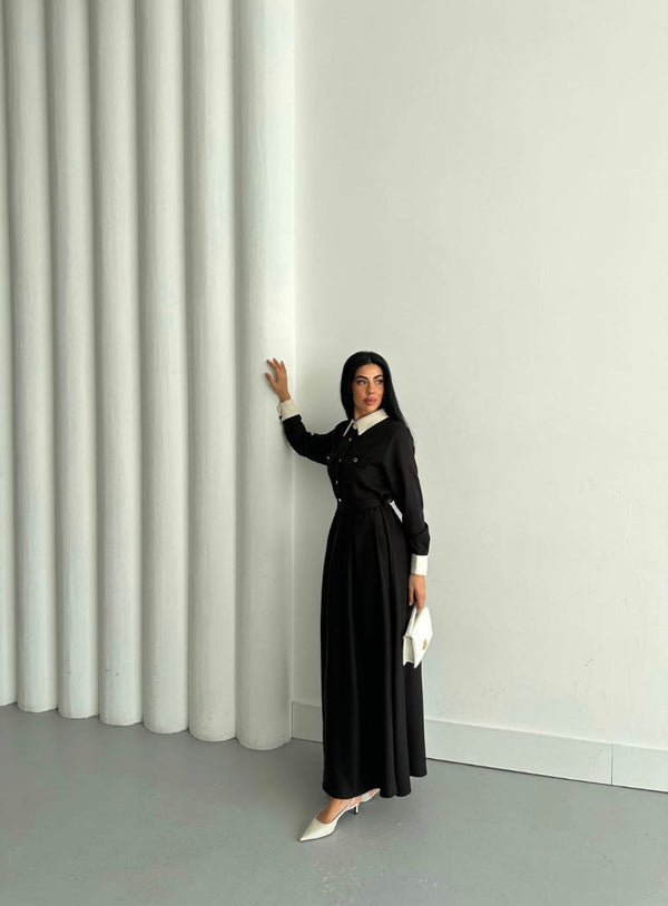 فستان قصة فرنسية اسود 6001