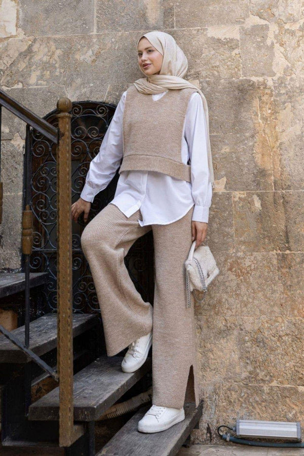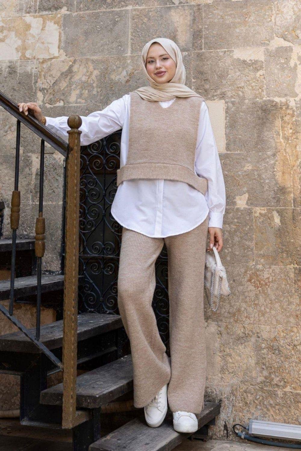 القماش: بدلة تريكو، قميص بوبلين، وقميص داخلي