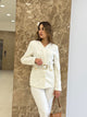 طقم كريب عالي الجودة مع ربطة وازرار فضية - بيج