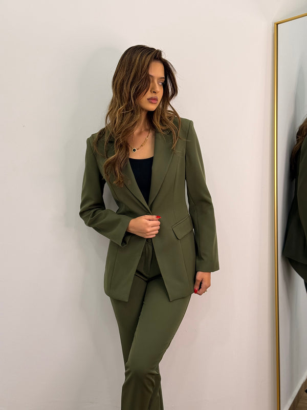 يأتي مع بنطال بقصّة مستقيمة تعكس حضوراً عملياً وأنثوياً في آن واحد.