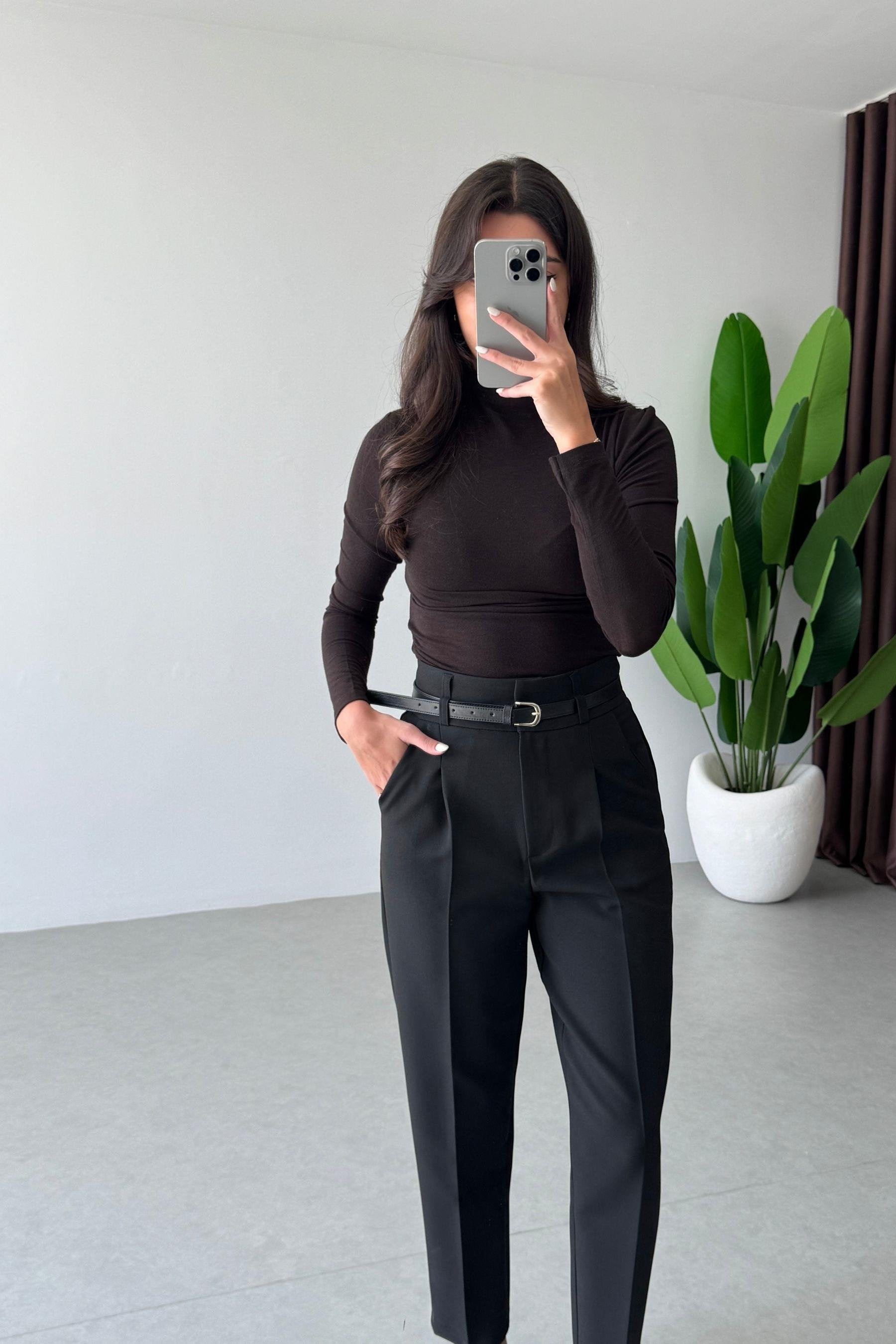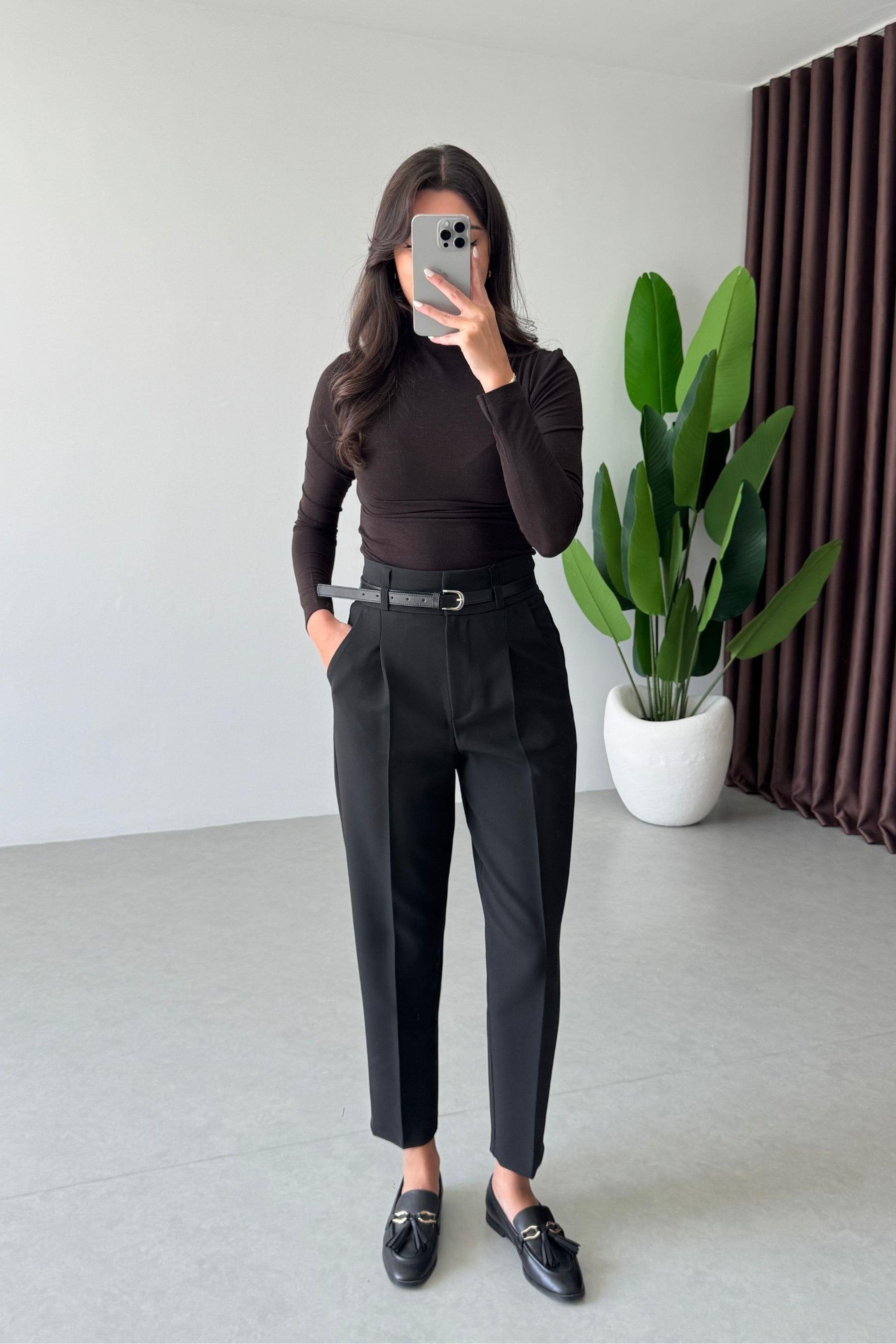 بنطلون قماش مع قشاط