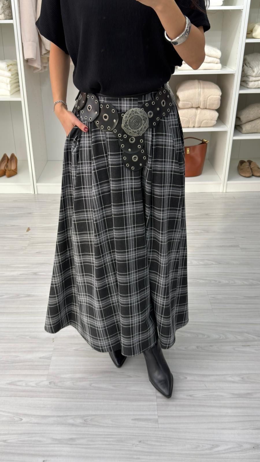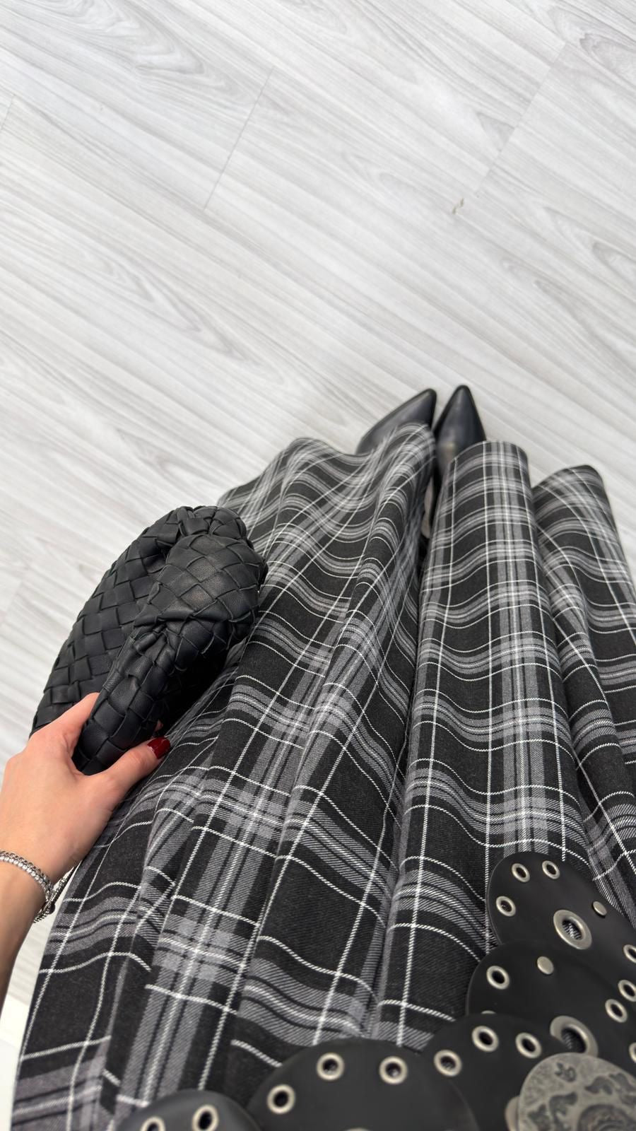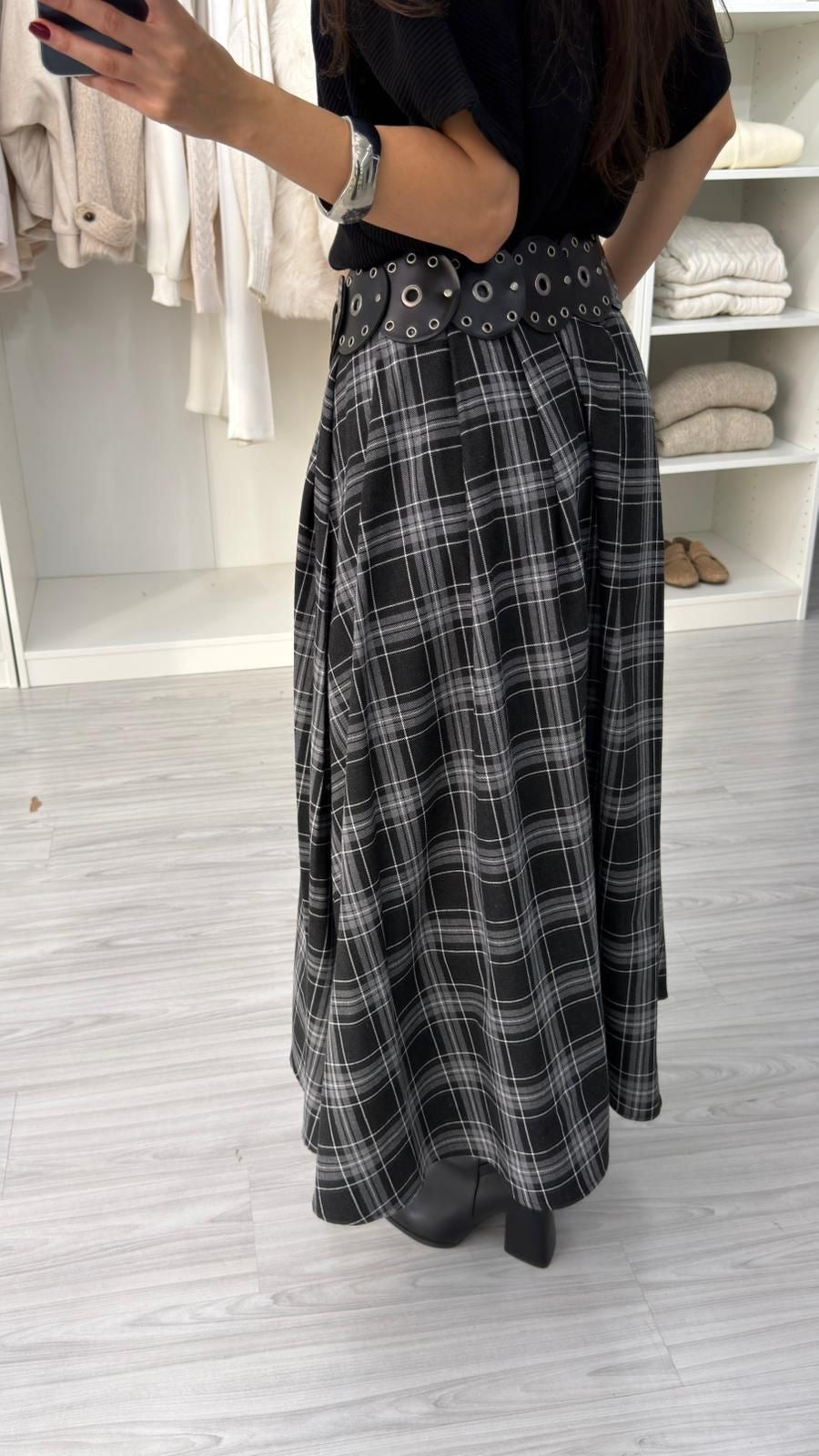 تنورة طويلة بقصة واسعة وانسيابية، مصممة بنقشة الكاروه الكلاسيكية باللون الخمري مع خطوط فاتحة أنيقة. مصنوعة من قماش مريح وعالي الجودة، تمنح مظهراً أنثوياً راقياً ومناسبة للاستخدام اليومي والمناسبات البسيطة. سهلة التنسيق مع مختلف القطع، وتناسب الإطلالات المحتشمة والعصرية في آنٍ واحد.