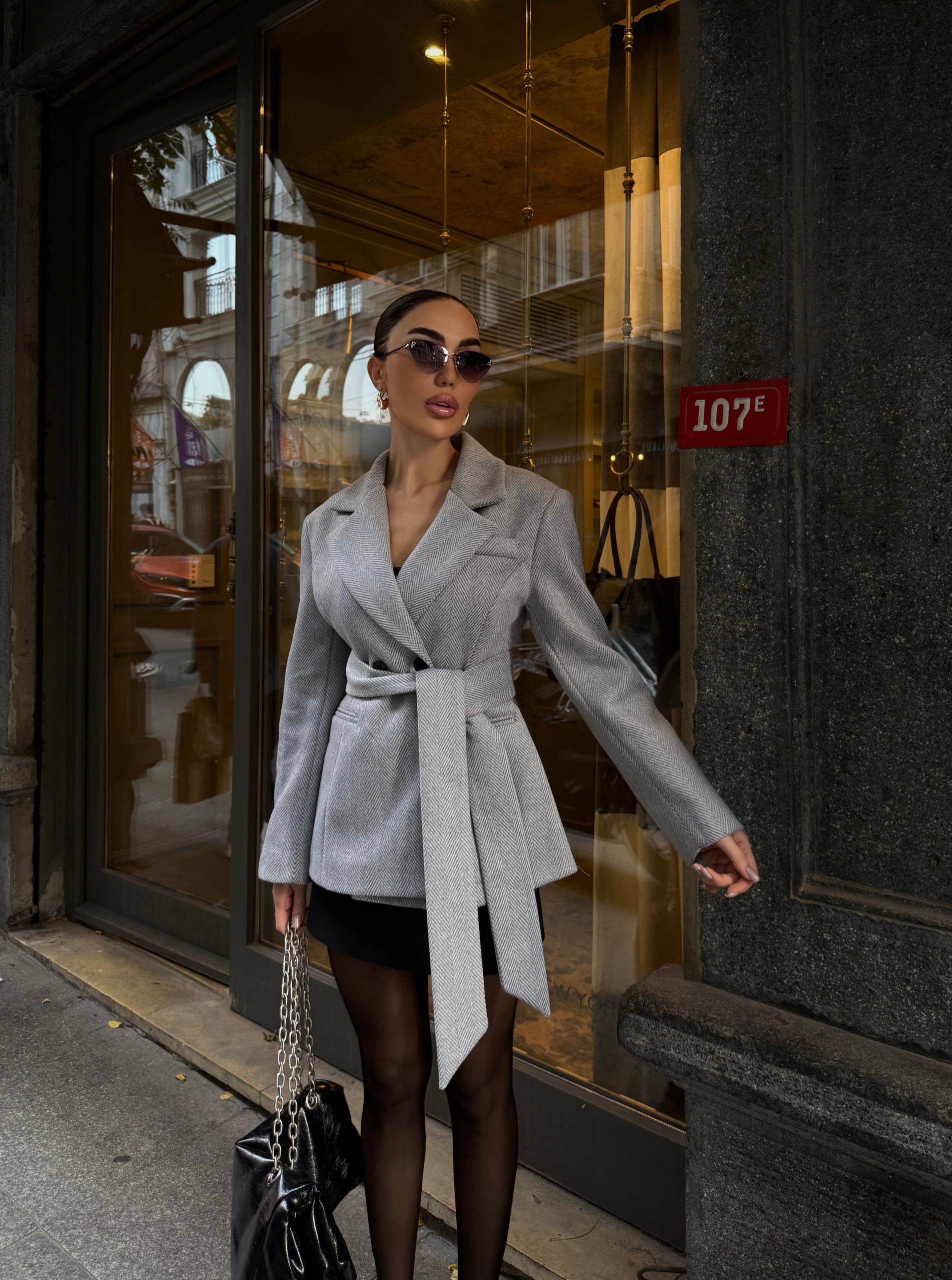جاكيت كشمير فاخر مبطن بحزام ومُفصّل بتفاصيل شال