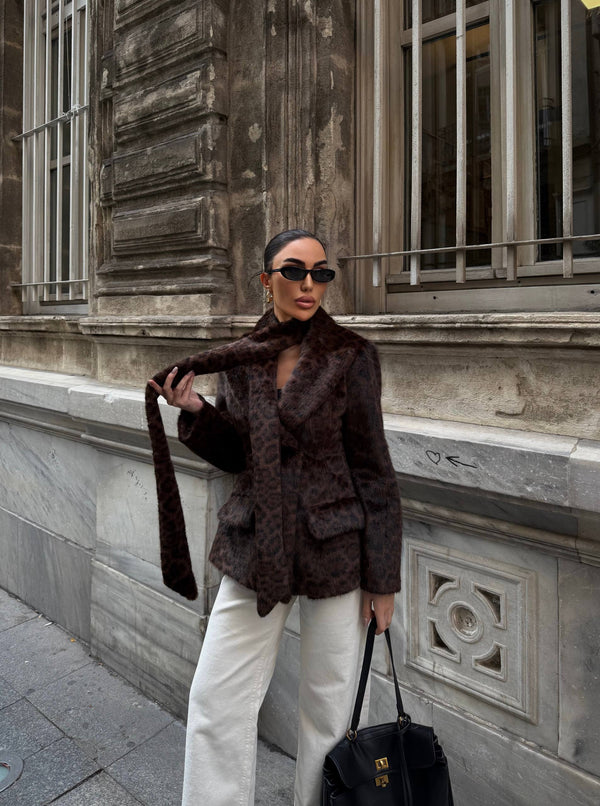 جاكيت كشمير فاخر مبطن بحزام ومُفصّل بتفاصيل شال