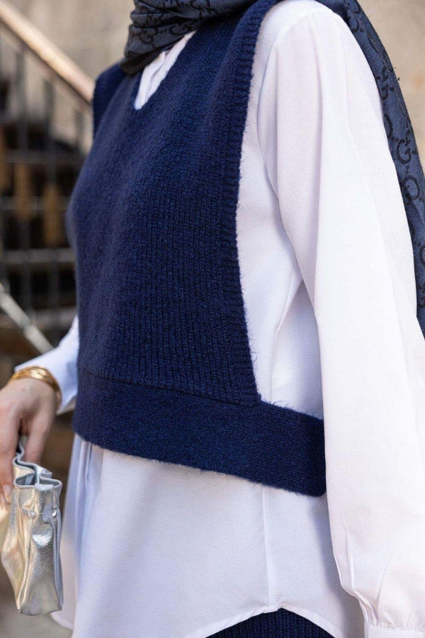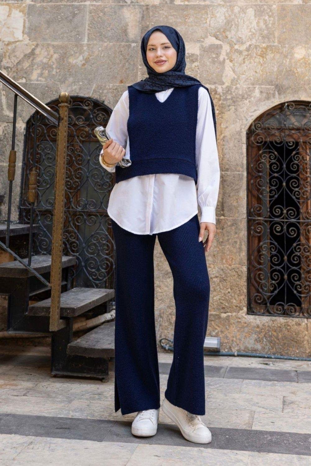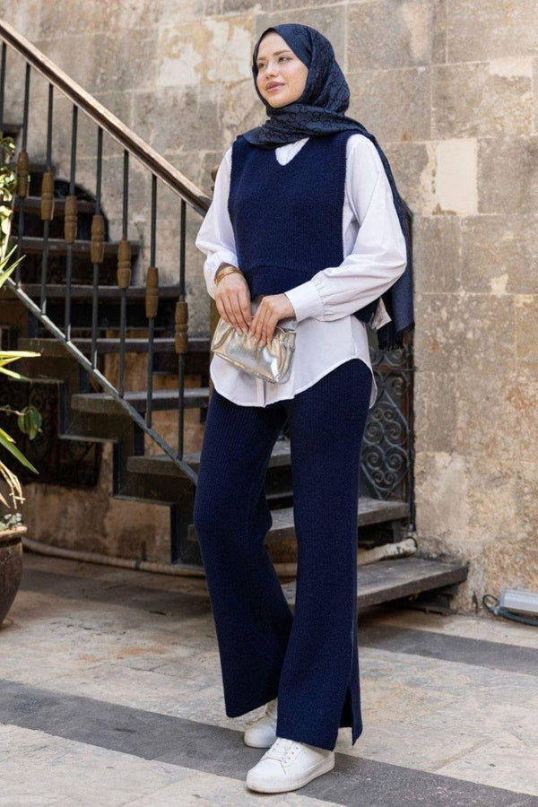 طقم صوف ثلاث قطع - كحلي