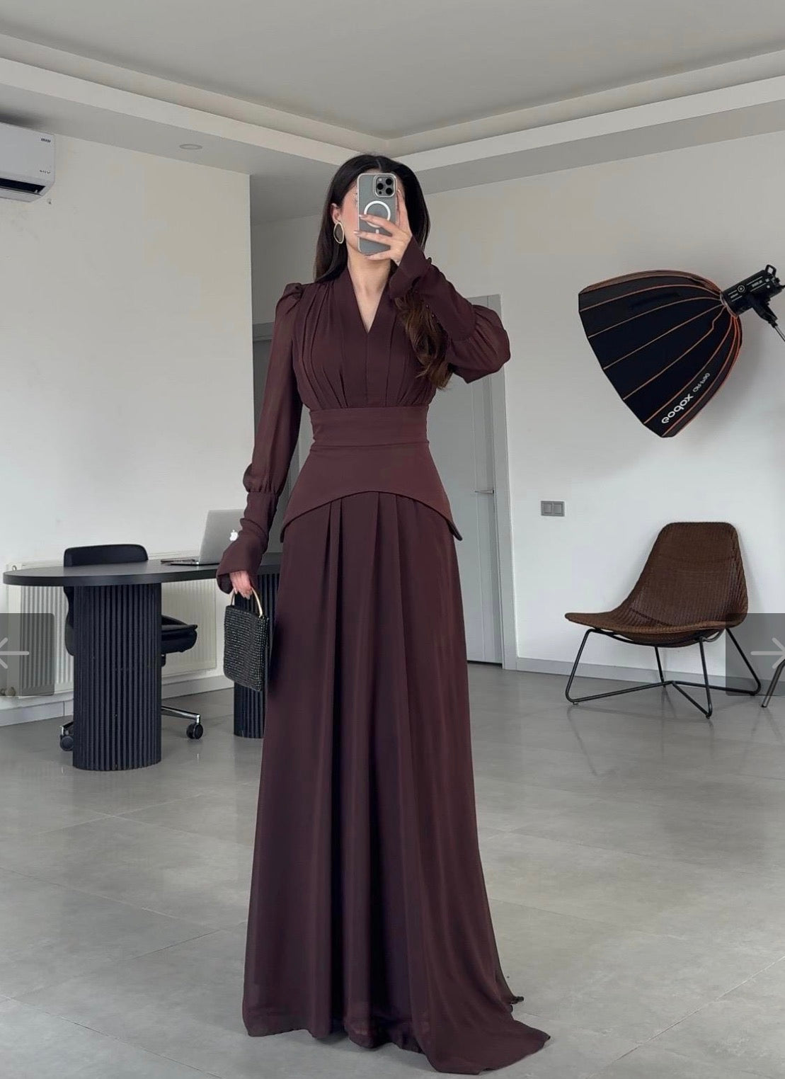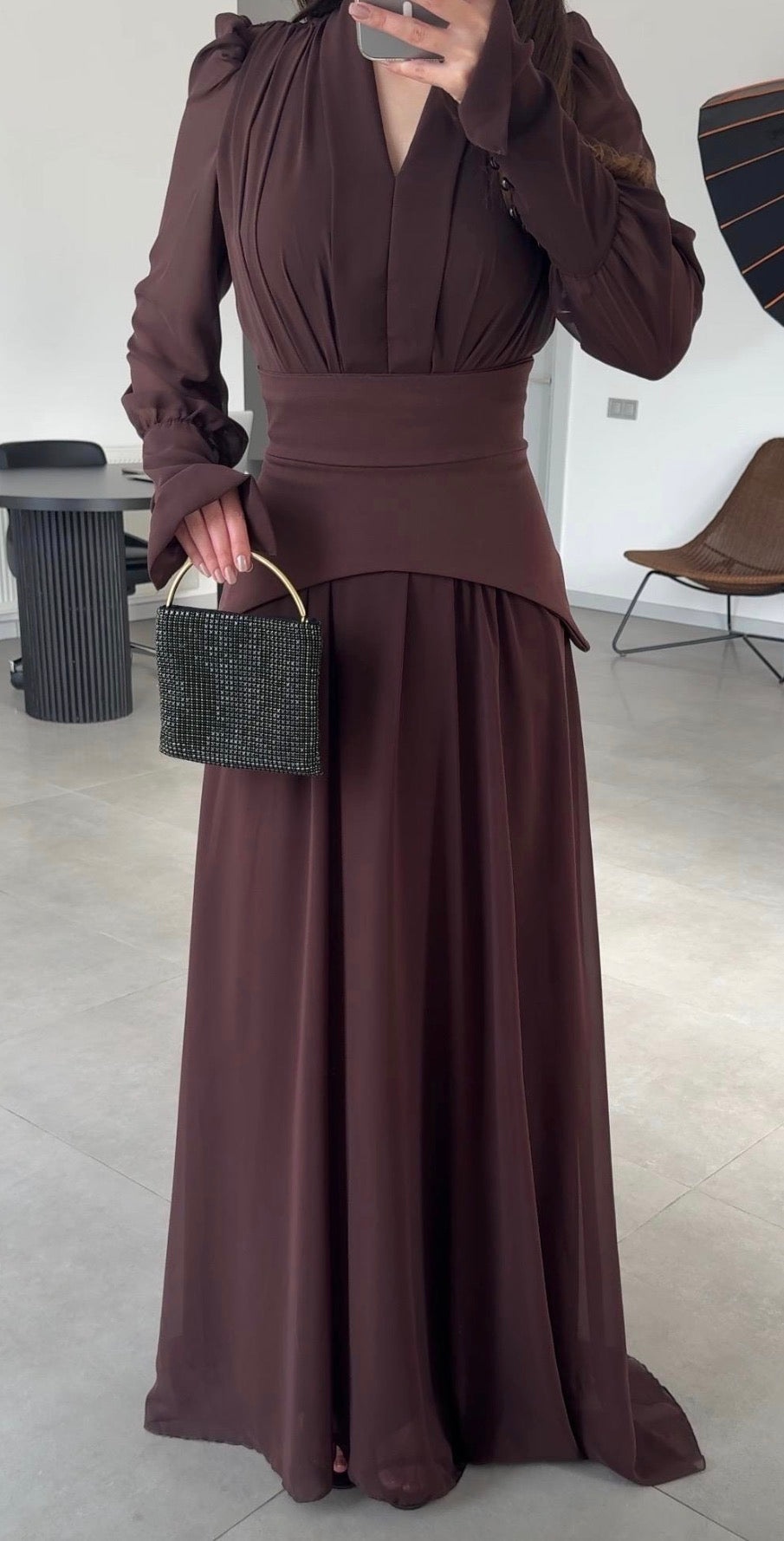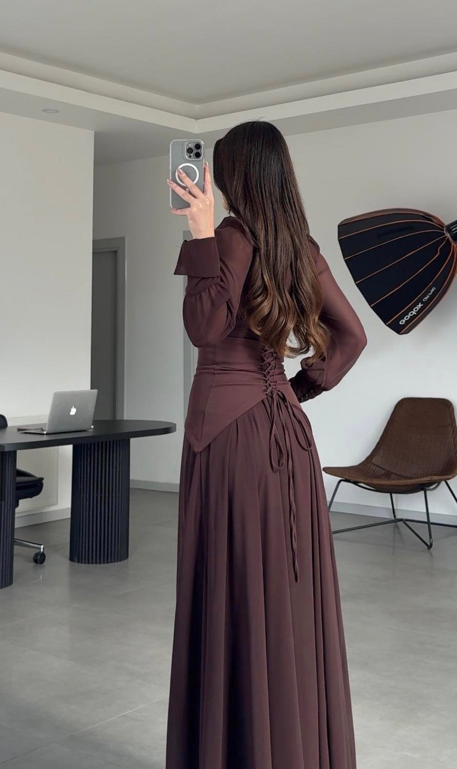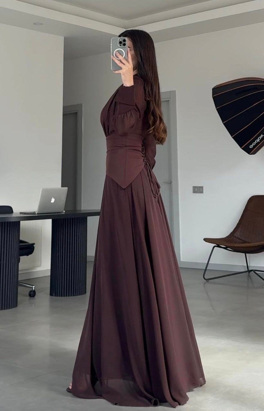 فستان بني بتصميم كورسيه